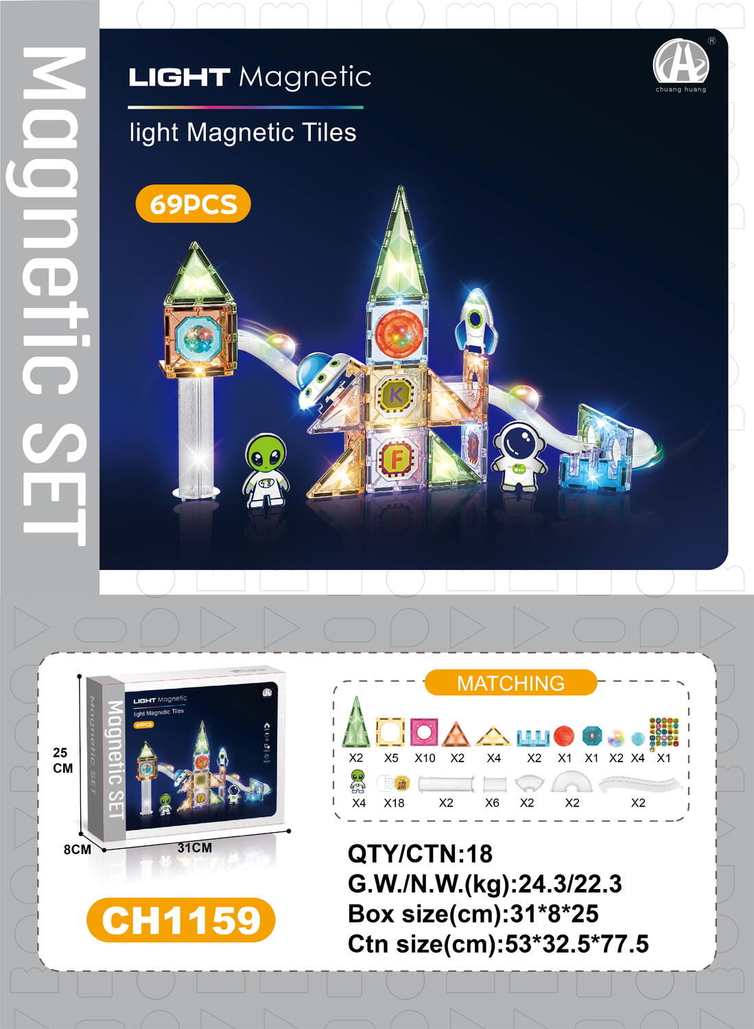 Atentie! Contine magneti. Inghitirea/inhalarea poate provoca accidente grave sau fatale. Consultati urgent medicul. Pericol de sufocare: Contine piese mici. Nerecomandat sub 3 ani. Indepartati ambalajele inainte de utilizare. Supravegheati copilul in timpul utilizarii. Pastrati instructiunile. Feriti de foc, caldura si umiditate. Produsul poate diferi de fotografie, specificatii sau ilustratii.