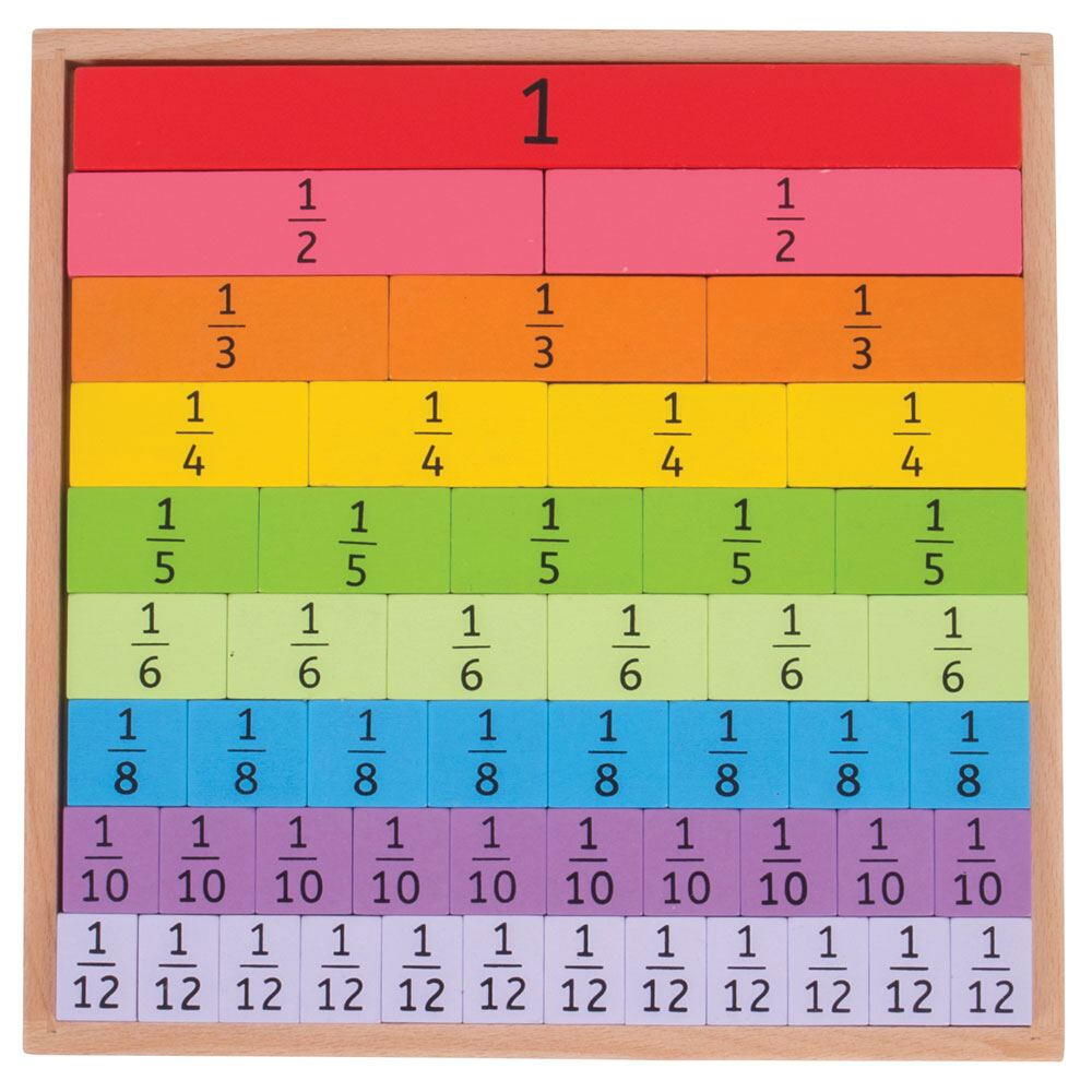 piesele din lemn colorat vor asigura o atentie deplina din partea celor mici, pe masura ce invata fractiile de la 1 la 1/12