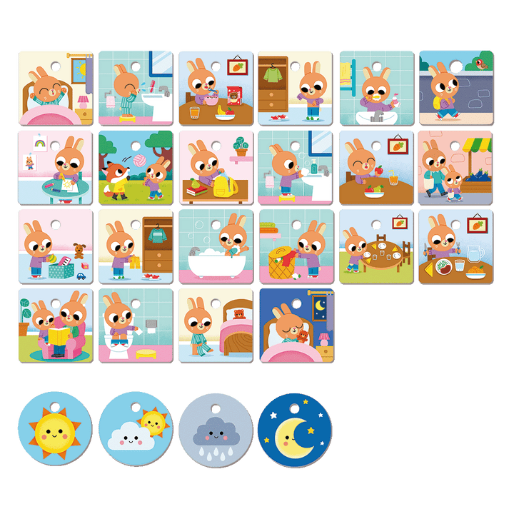 Copiii sunt incurajati sa planifice si sa recunoasca activitatile zilnice – de la spalatul pe dinti pana la mersul la scoala – dezvoltand astfel simtul responsabilitatii si al organizarii. Jocul este intuitiv si interactiv, oferind o experienta practica si distractiva.