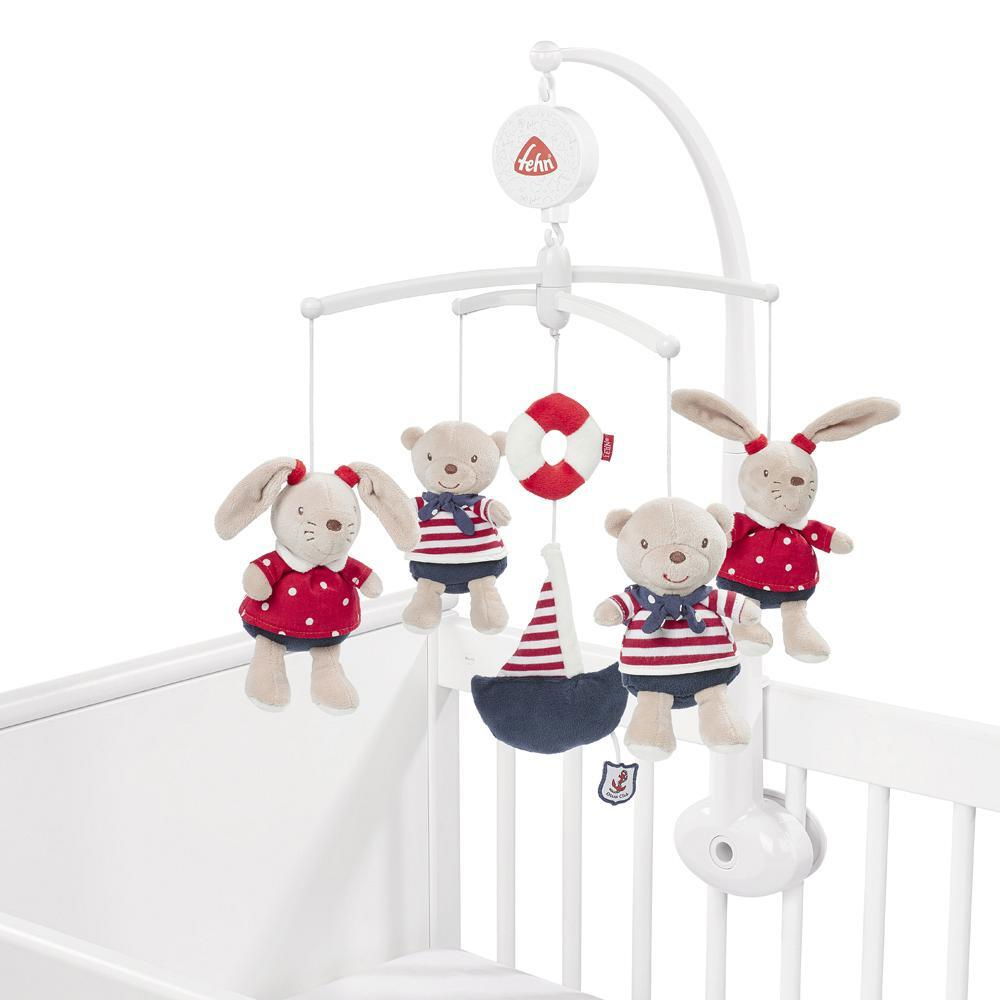 confectionat din materiale de calitate, caruselul are o multime de animalute simpatice imbracate in costumase marinaresti