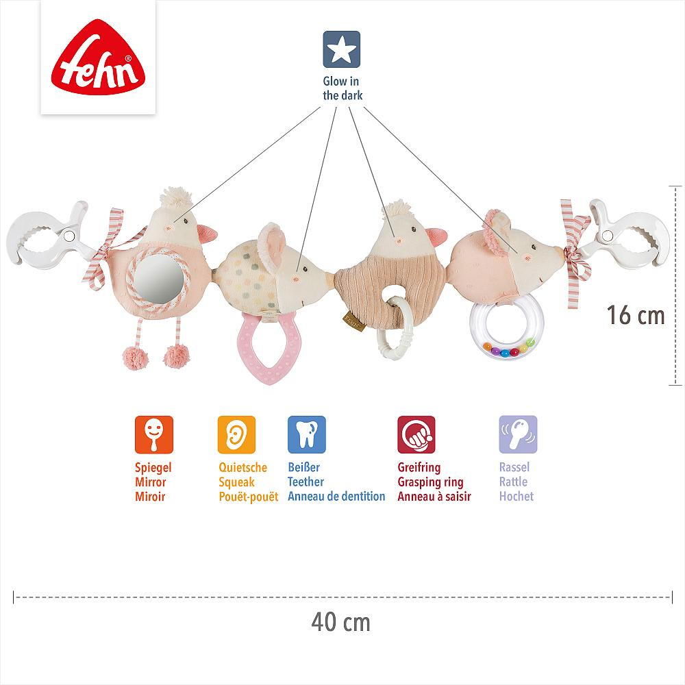 Proiectata cu personaje dragalase, precum soricei si pasari, aceasta jucarie interactiva ii invita pe bebelusi sa le apuce, sa le simta si sa le exploreze
