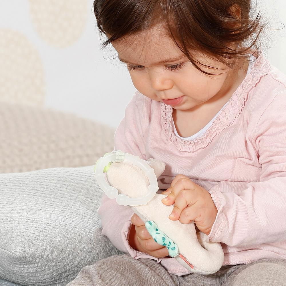 inelul de prindere atasat ofera o modalitate convenabila pentru bebelusi sa tina de jucarie si sa o exploreze cu usurinta