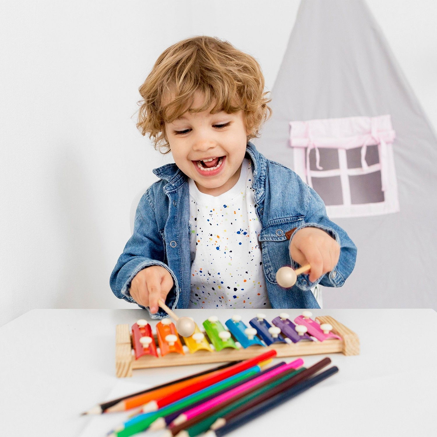 Cu un cadru din lemn vibrant si opt placi metalice in culori vii, acest xilofon este nu doar un instrument muzical, ci si o modalitate excelenta de a dezvolta abilitatile motorii si simtul ritmului al micutilor artisti in devenire.