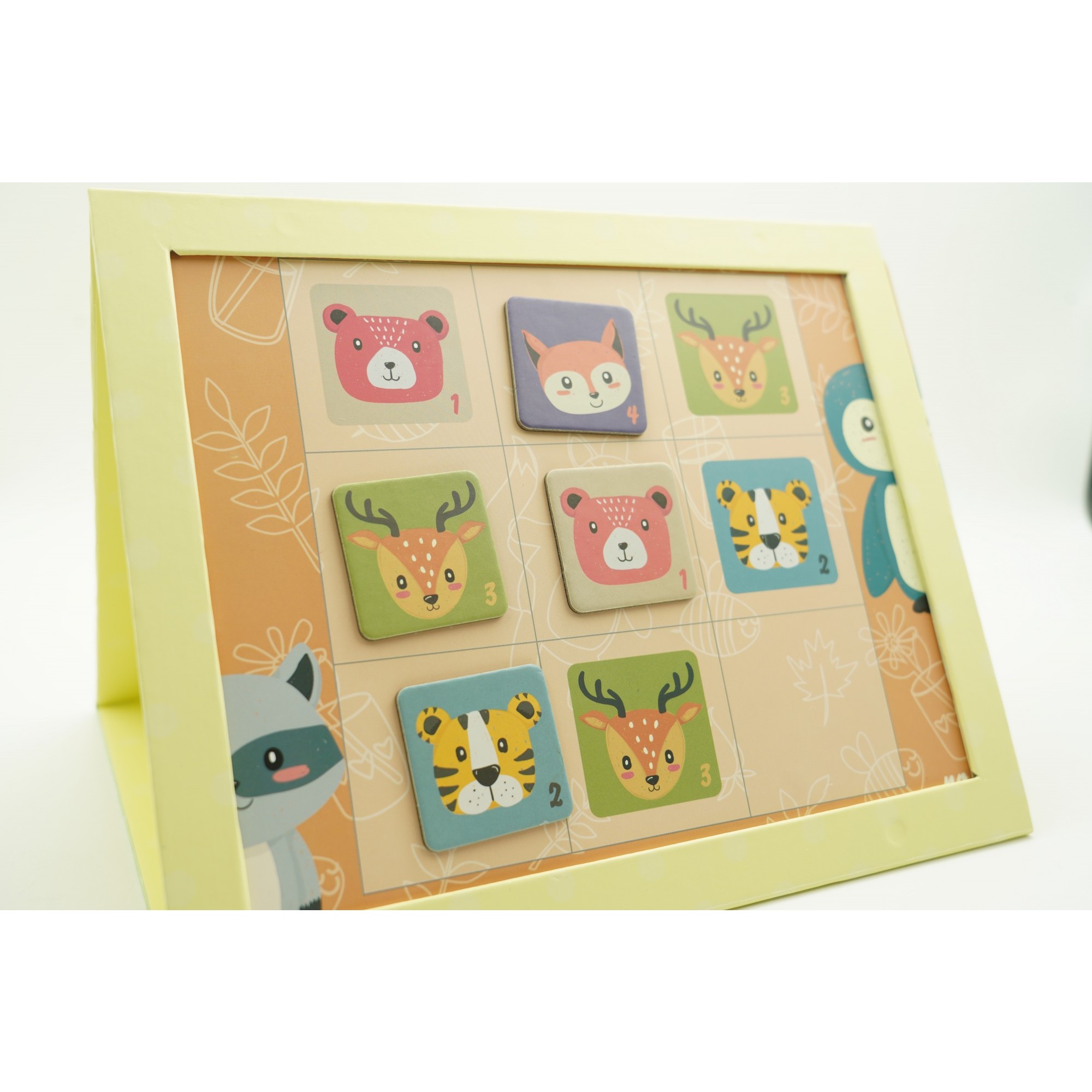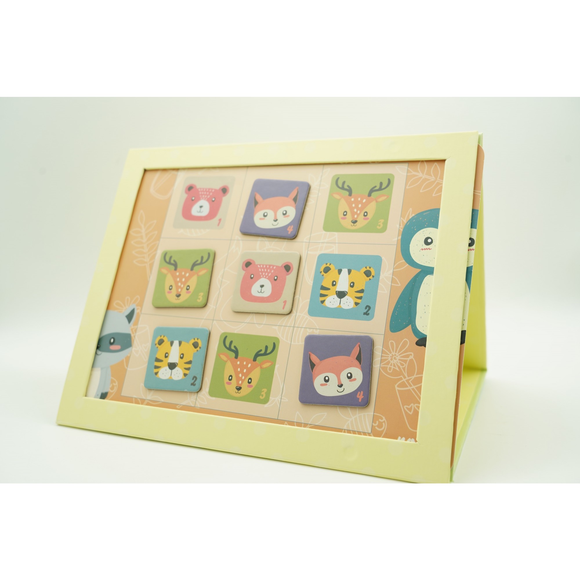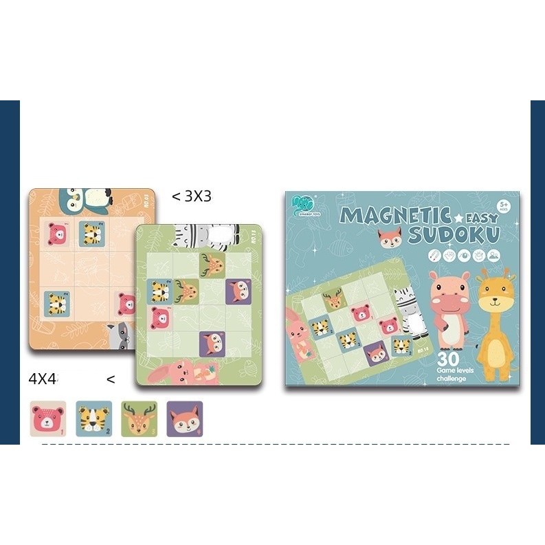 Joc educativ Sudoku cu tablita magnetica, 32 de piese, cartonase cu animale, Verde
