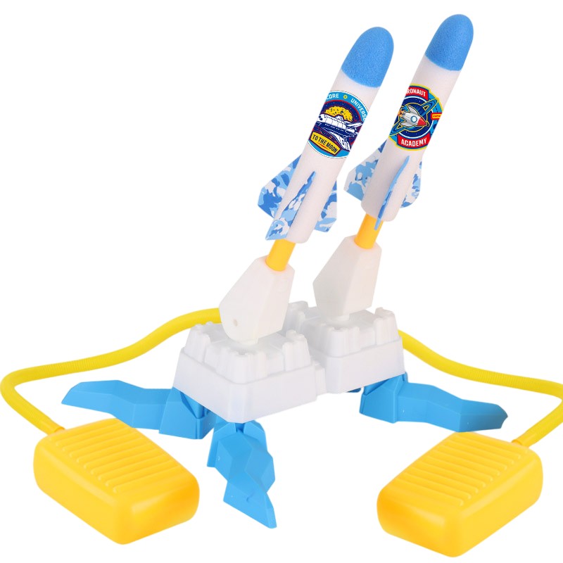LANSATORUL DE RACHETE este un joc de exterior, conceput pentru a oferi copiilor o experienta distractiva si activa in aer liber. Jocul vine cu doua pedale pentru lansarea rachetelor.