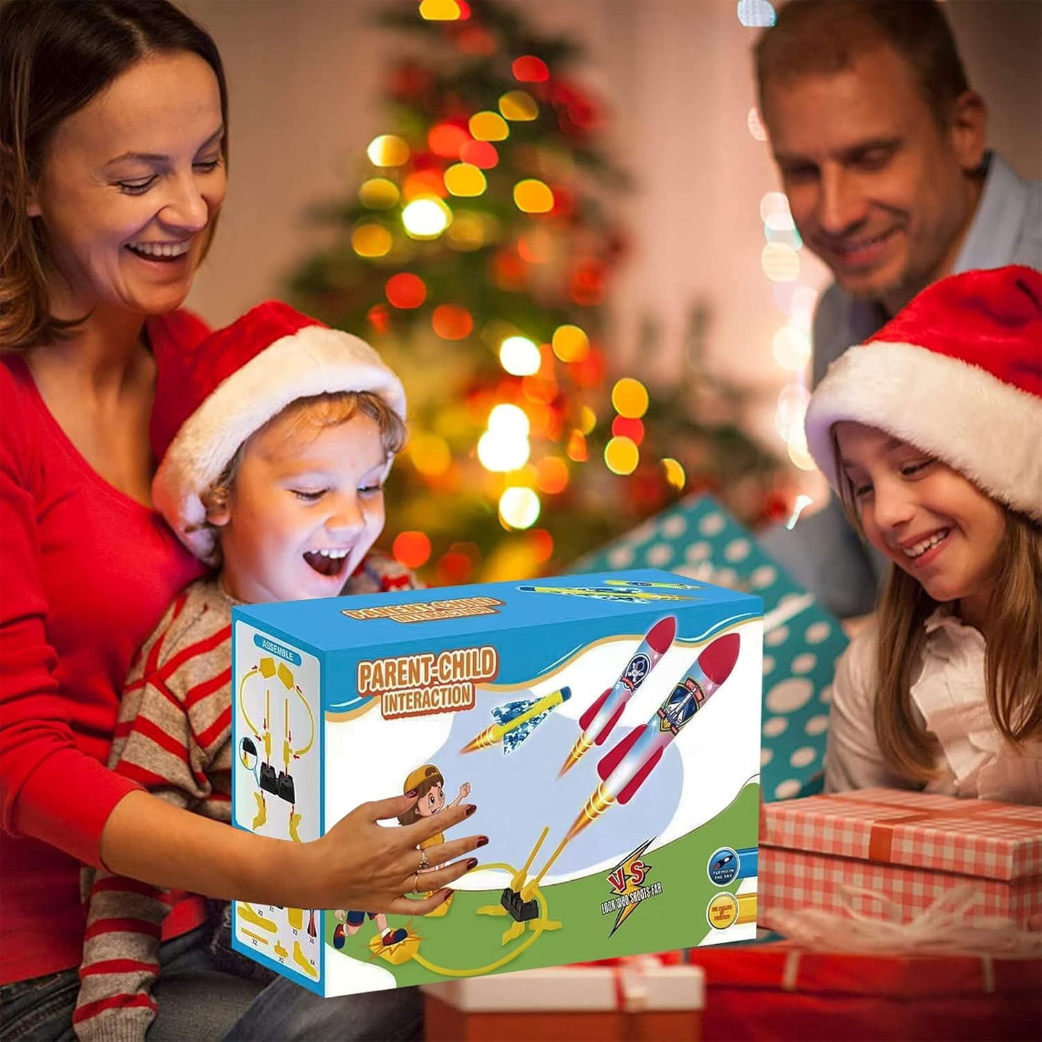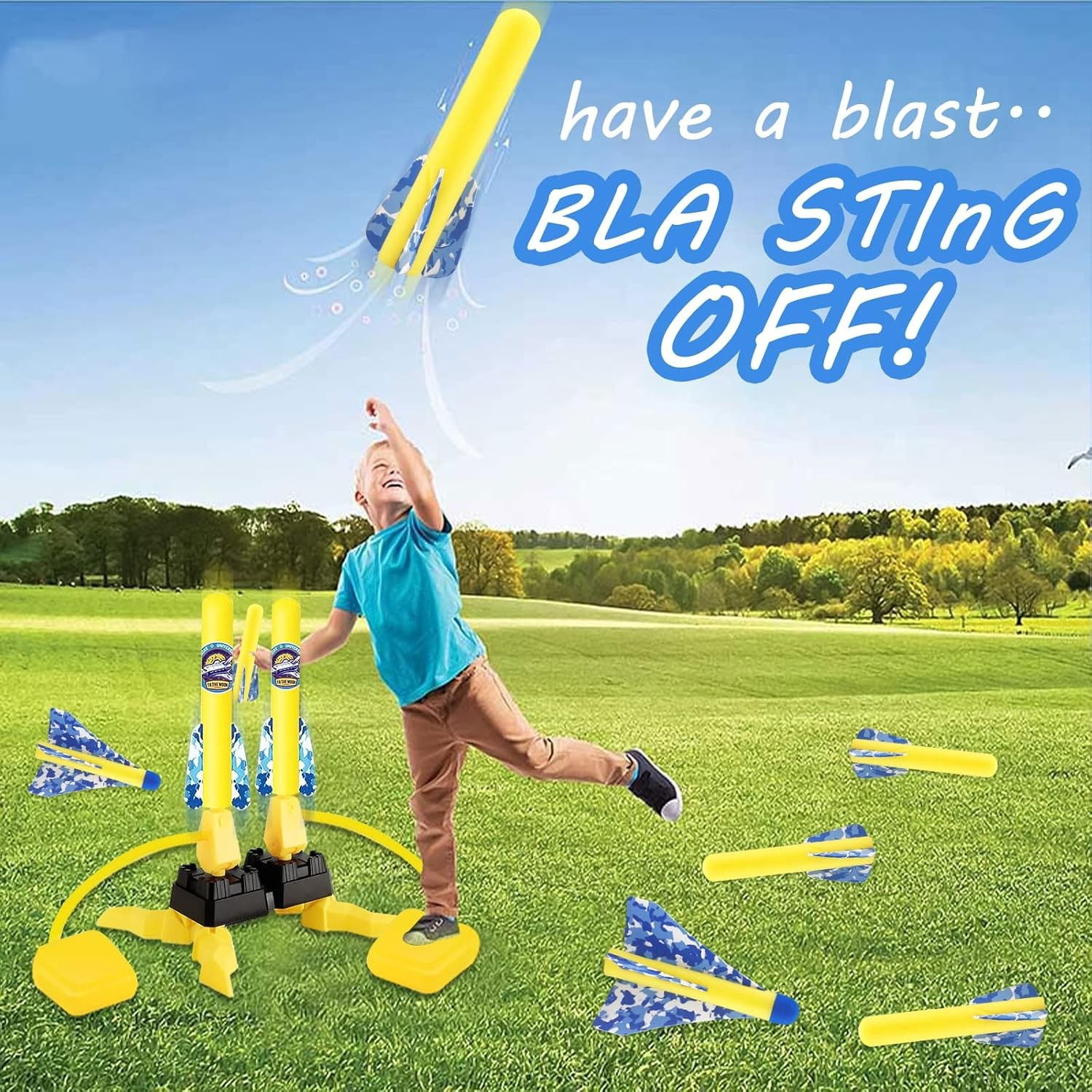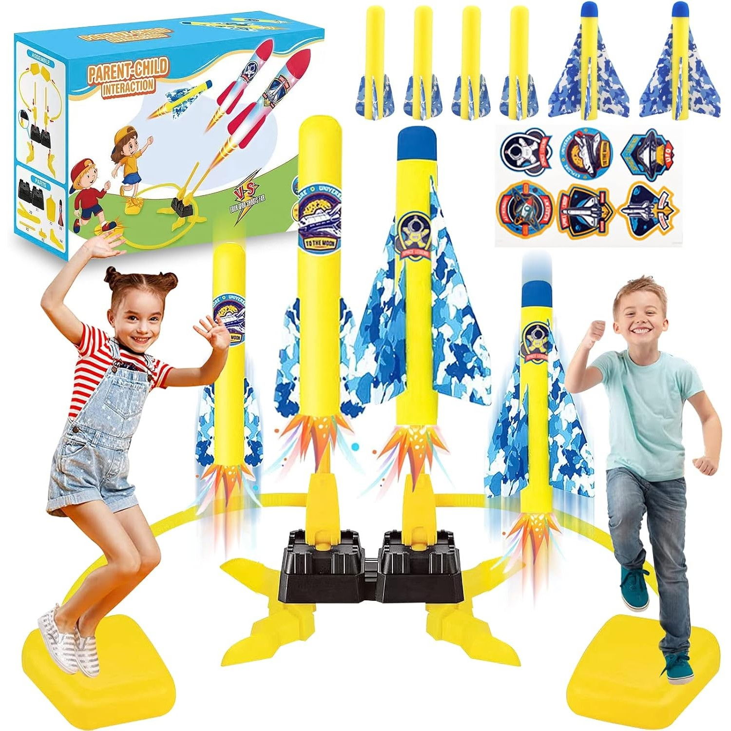 • UNA DINTRE CELE MAI ATRACTIVE JUCARII DE EXTERIOR - Atat fetele cat si baietii vor fi interesati sa se joace in aer liber cu acest lansator, si sa observe cat de sus poate ajunge. Lansator este dublu astfel ca doi copii, sau un copil si un parinte se pot juca in acelasi timp, si pot apasa pedala cat mai tare pentru ca racheta sa fie proiectata cat mai sus.