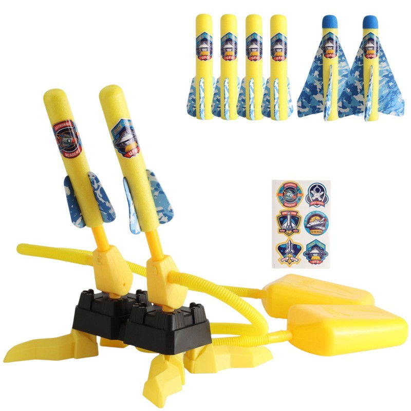 Jucarie pentru copii, lansator rachete cu piciorul, doua lansatoare, 6 rachete fara lumini