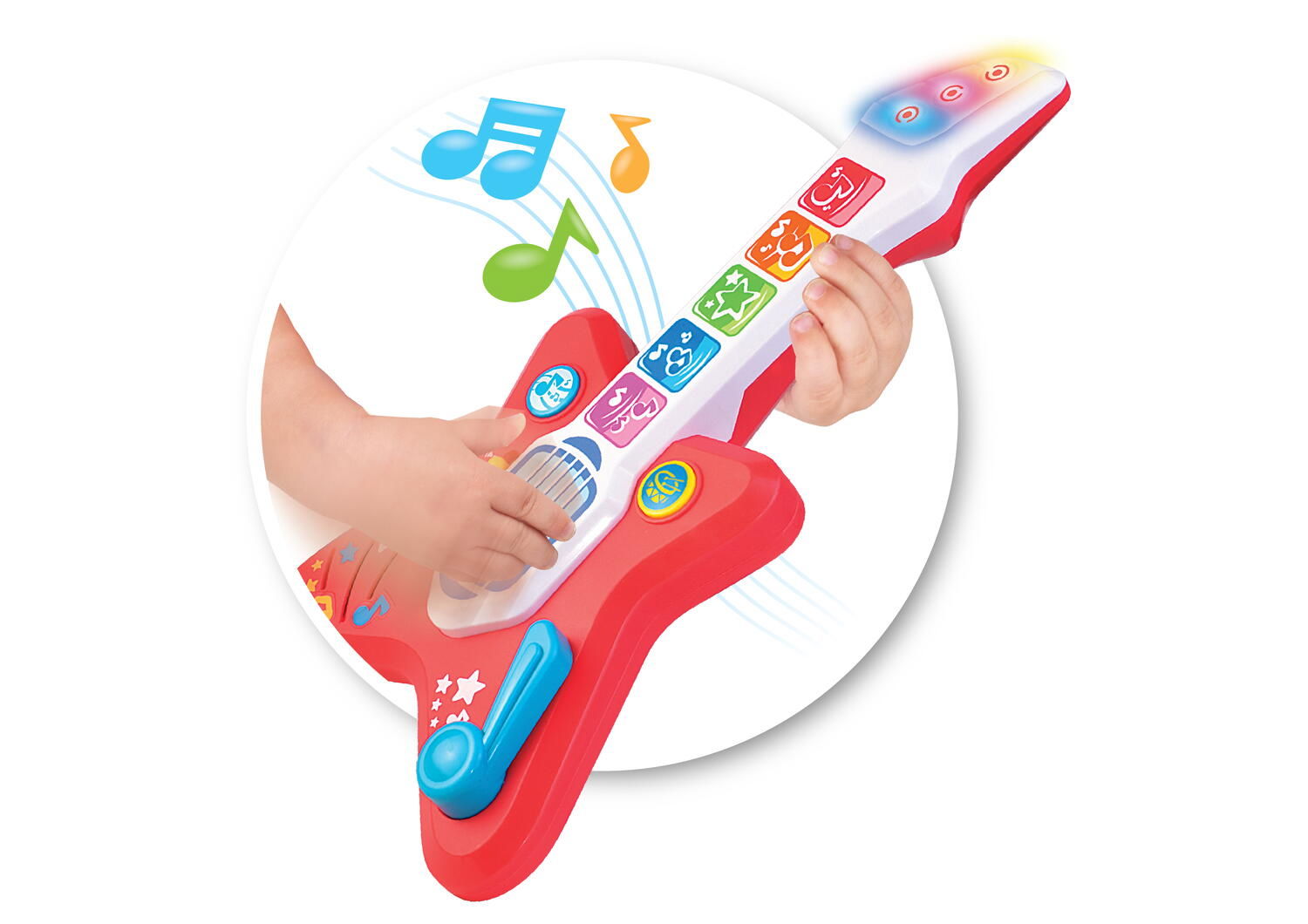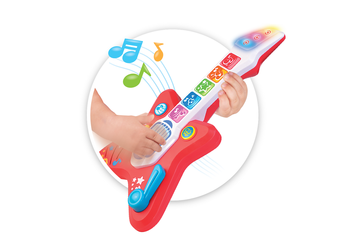 Contine 6 cantece preinregistrate care incurajeaza recunoasterea melodiilor si sustin jocul activ