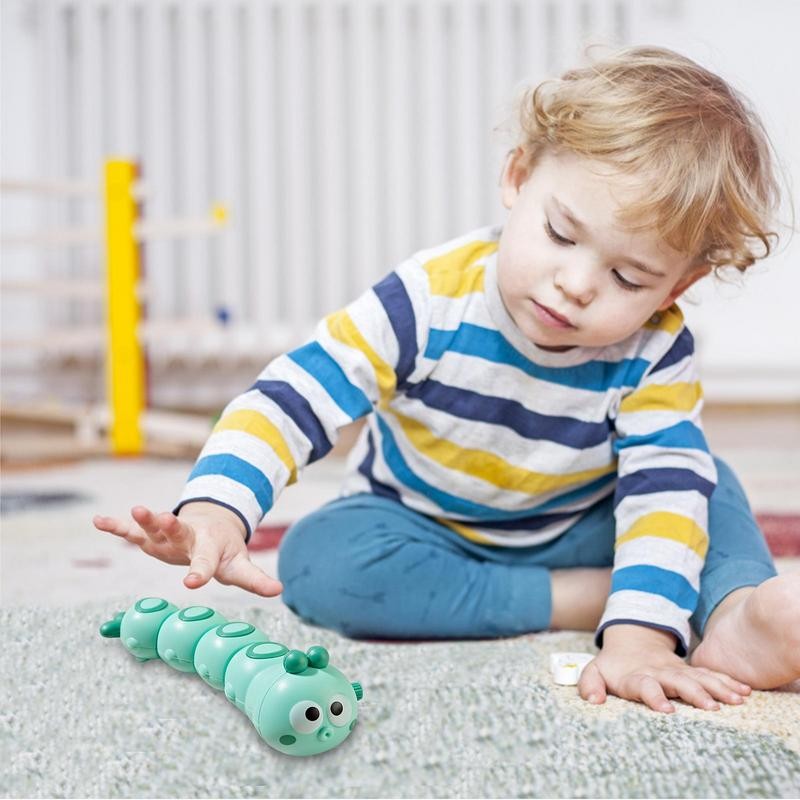 Distracție și stimulare vizuală: Jucăria "Flippy" este proiectată într-o formă de omidă haioasă, cu nuanțe vesele de verde, ceea ce o face extrem de atrăgătoare pentru copii. În timp ce omida se târăște și se mișcă pe suprafața plană, copiii vor fi captivați de mișcările jucause și vor urmări cu interes fiecare pas pe care îl face. Această stimulare vizuală sporește atenția și concentrarea, contribuind, totodată, la dezvoltarea capacităților lor de observație și analiză a mediului înconjurător.