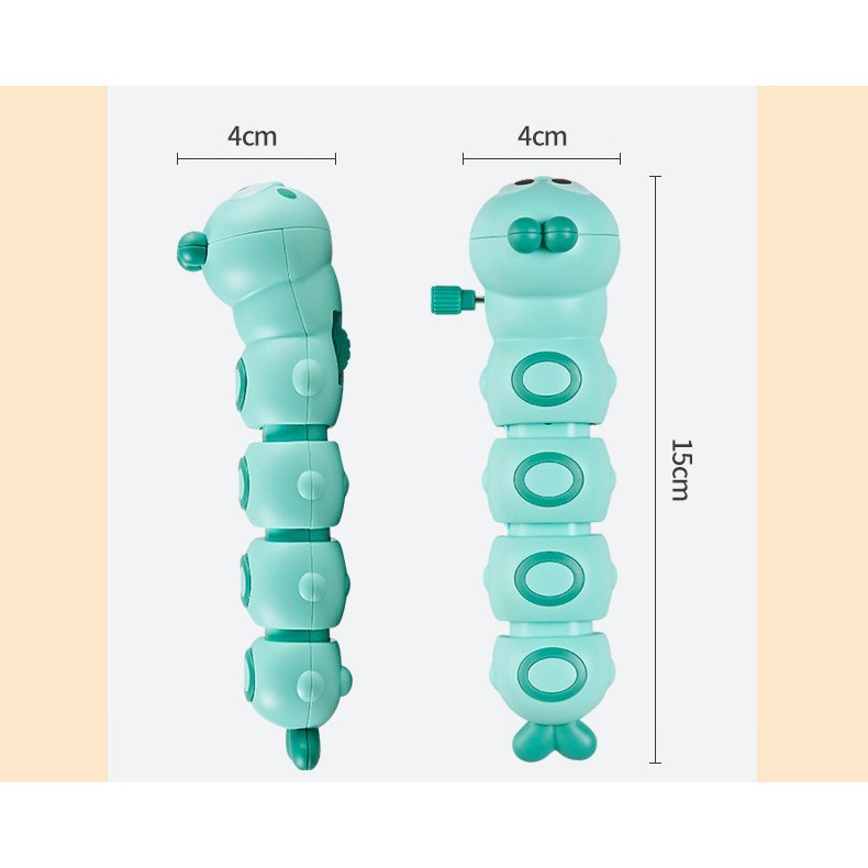Jucarie mecanica pentru copii Flippy, omida haioasa, cu cheita, distractiva, se taraste, se misca, 15 x 4 cm, verde