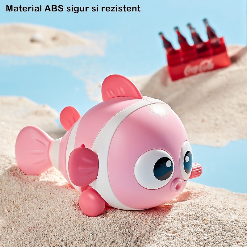 Învățare prin experiență: Jucăria "Flippy" nu doar aduce distracție, ci și oportunități de învățare prin experiență. Copiii vor putea observa cum mișcările pestișorului sunt generate de acționarea cheiței. Această experiență simplă îi va familiariza cu conceptul de cauză și efect, stimulând gândirea logică și creativă. În timp ce se bucură de joc, vor dezvolta în mod natural abilități de observație și analiză, contribuind la dezvoltarea lor cognitivă.