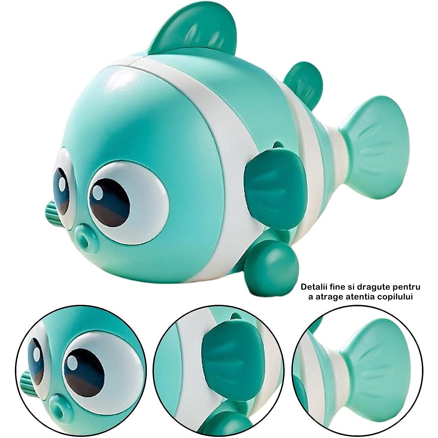Învățare prin experiență: Jucăria "Flippy" nu doar aduce distracție, ci și oportunități de învățare prin experiență. Copiii vor putea observa cum mișcările pestișorului sunt generate de acționarea cheiței. Această experiență simplă îi va familiariza cu conceptul de cauză și efect, stimulând gândirea logică și creativă. În timp ce se bucură de joc, vor dezvolta în mod natural abilități de observație și analiză, contribuind la dezvoltarea lor cognitivă.