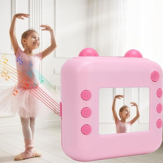 Camera Instantanee pentru Copii, Flippy, cu Functie de Printare, Cablu USB-C, Bluetooth, compatibil iOS/Android, Imprimare APP, Model Urechi, Snur Subtire Inclus, Roz