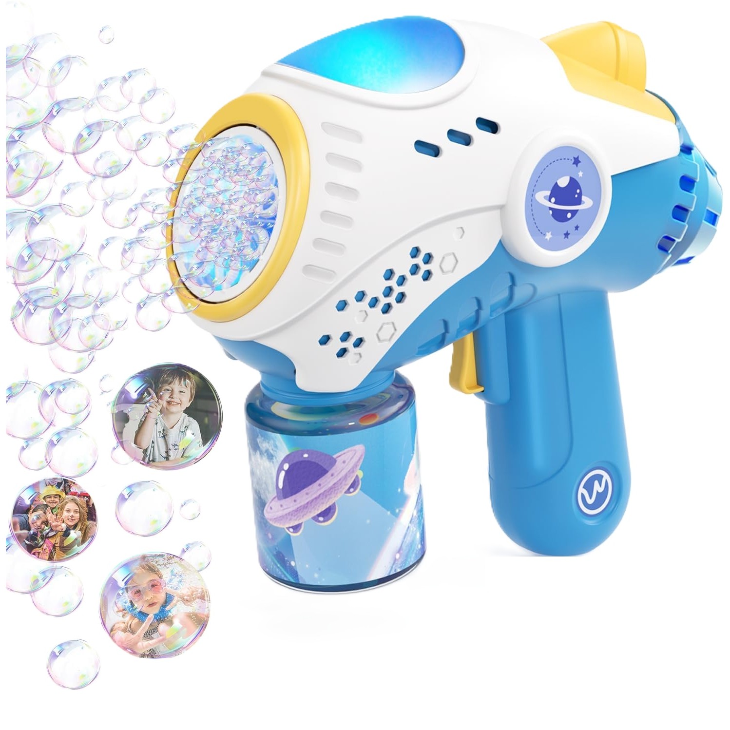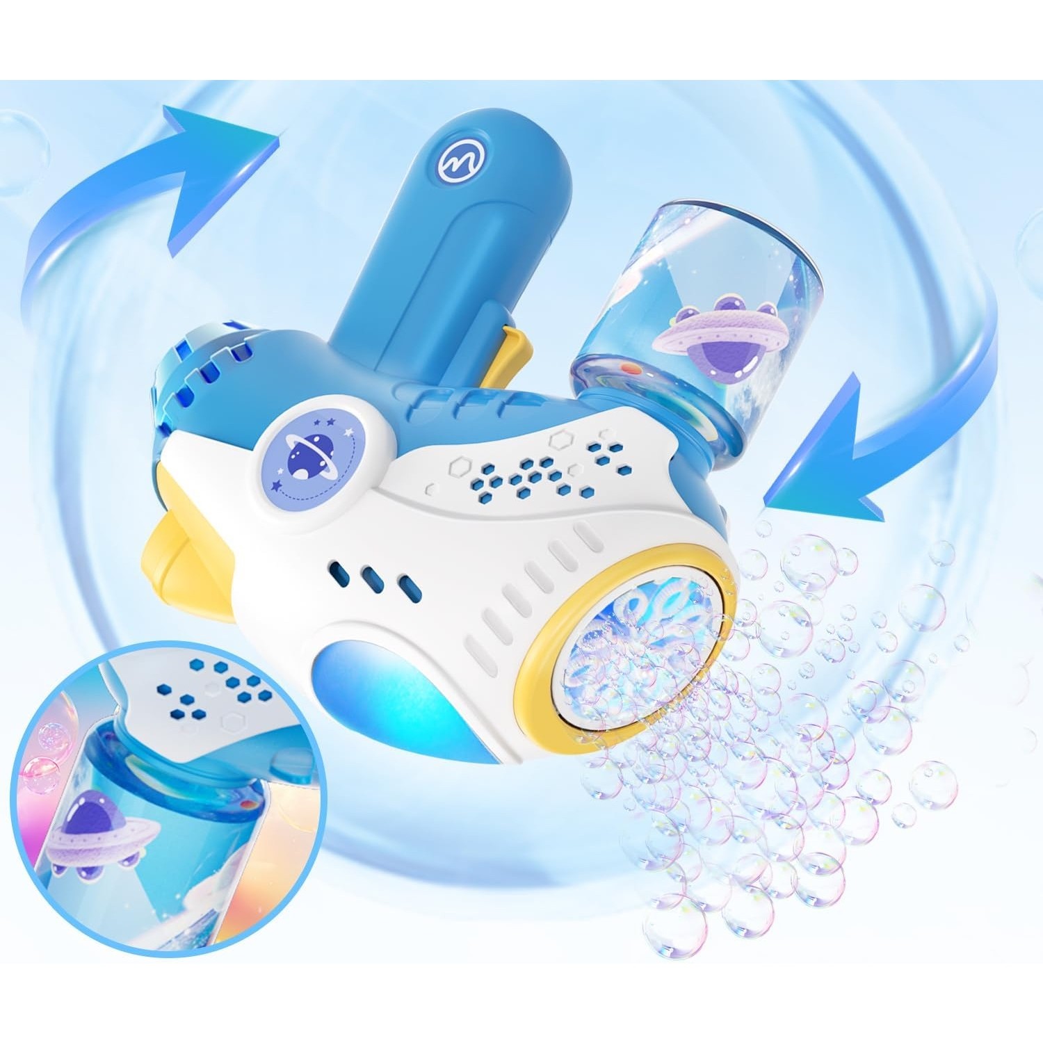 ✔ 8 orificii pentru eliberarea baloanelor – pentru o ploaie spectaculoasă de bule
