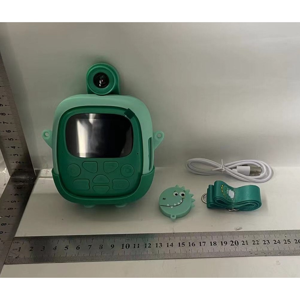Set Camera Instantanee pentru Copii, Flippy, Ecran HD 2.4'', 24MP, 720P Video, 1200 mAh, cu Functie de Printare Alb-Negru, cablu USB-C, Bluetooth, Compatibil iOS/Android, Imprimare APP, Model Dinozaur, Verde