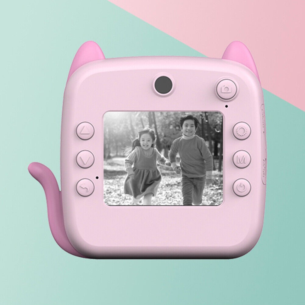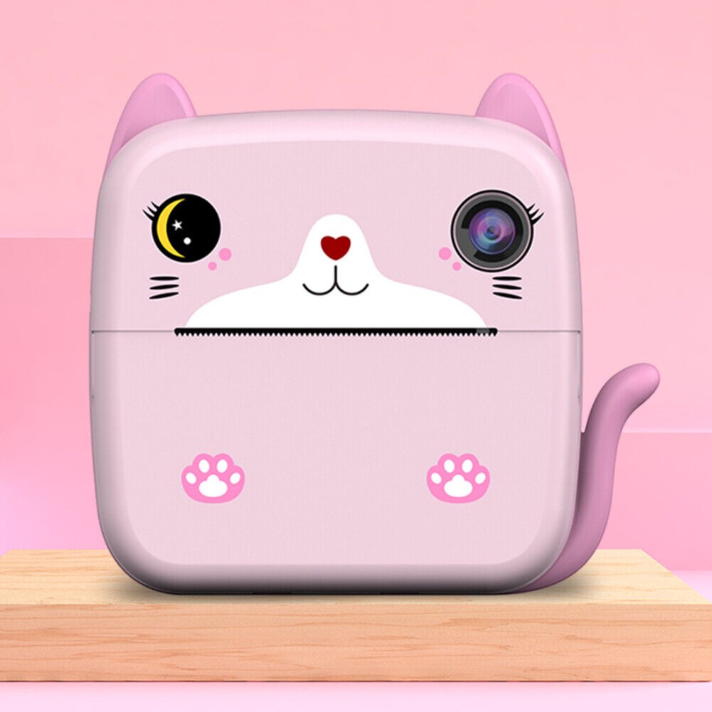 Set Camera Instantanee pentru Copii, Flippy, Ecran HD 2.4'', 24MP, 720P Video, 1200 mAh, cu Functie de Printare Alb-Negru, cablu USB-C, Bluetooth, Compatibil iOS/Android, Imprimare APP, Model Kitty, Roz