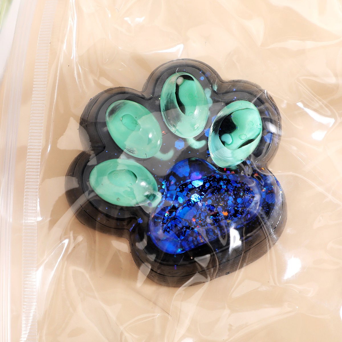 Jucarie Antistres Squishy, Flippy, cu Revenire Lenta, Squeeze Pinch Family, Model Cat Paw, 6.5 x 6 cm, din Tpr, 4-6 Ani, Model 1 Pestisori, Negru cu Insertii