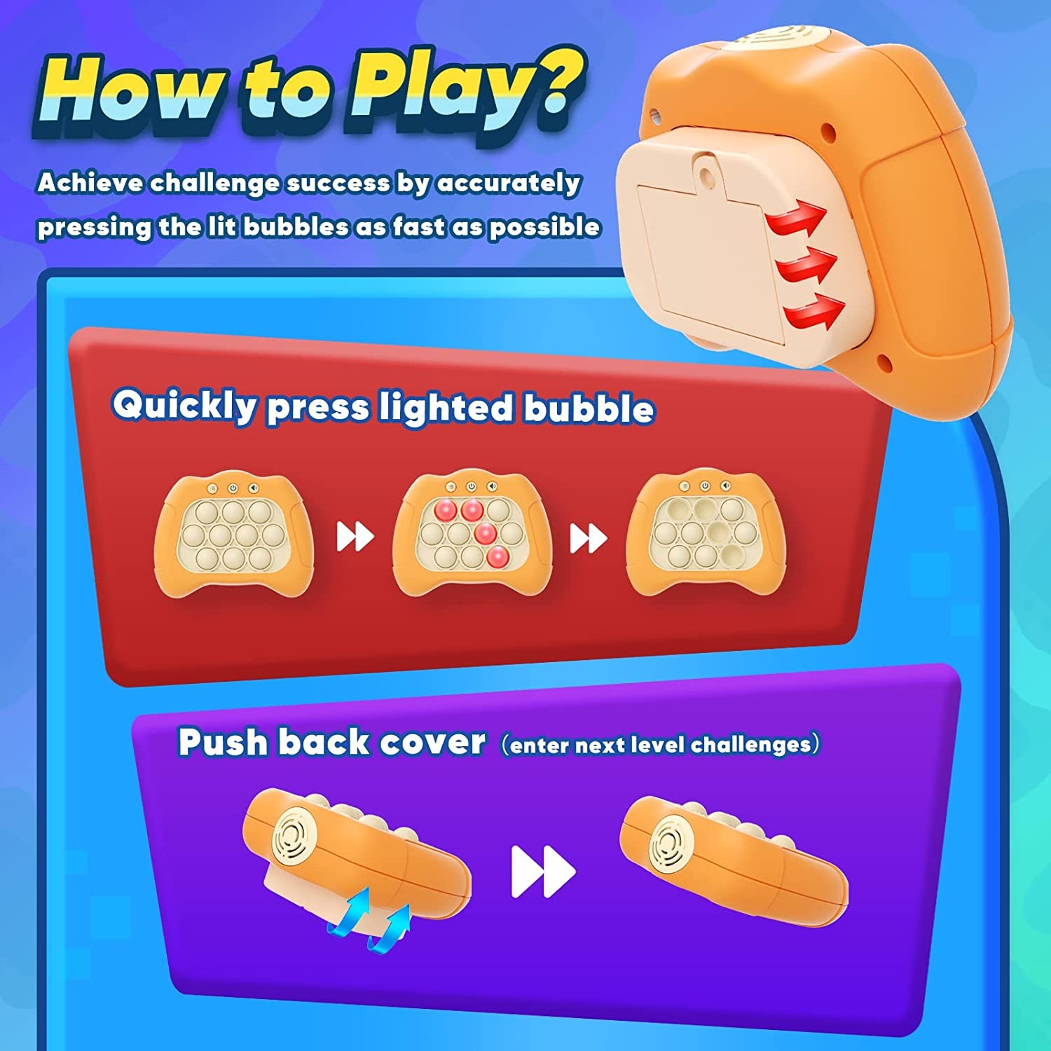 Patru moduri distractive de joc - Apasati rapid si corect bulele aprinse aleatoriu pentru a trece fiecare nivel, daca apasati gresit jocul se va termina. Fiecare mod are diferite feluri de dificultate, ajuta la exersarea vitezei de reactie si a memoriei copiilor, dar si competitie si cooperare prin modul scor si multiplayer.