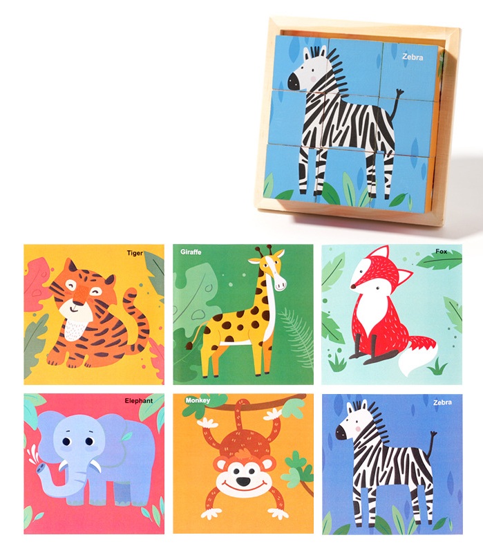 Copiii pot roti și combina cuburile pentru a reconstrui imaginile corecte, dezvoltându-și atenția, logica și coordonarea mână-ochi. Materialul din lemn este sigur, durabil și plăcut la atingere, ideal pentru joaca zilnică acasă sau la grădiniță.
