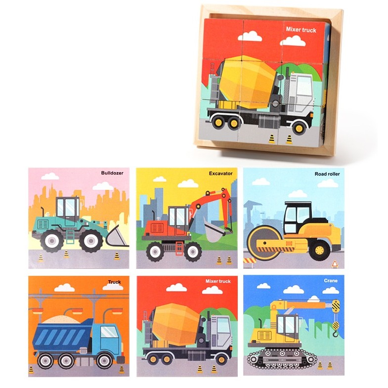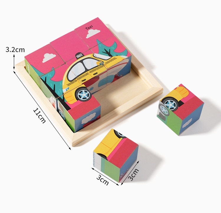 Copiii pot roti și combina cuburile pentru a reconstrui imaginile corecte, dezvoltându-și atenția, logica și coordonarea mână-ochi. Materialul din lemn este sigur, durabil și plăcut la atingere, ideal pentru joaca zilnică acasă sau la grădiniță.
