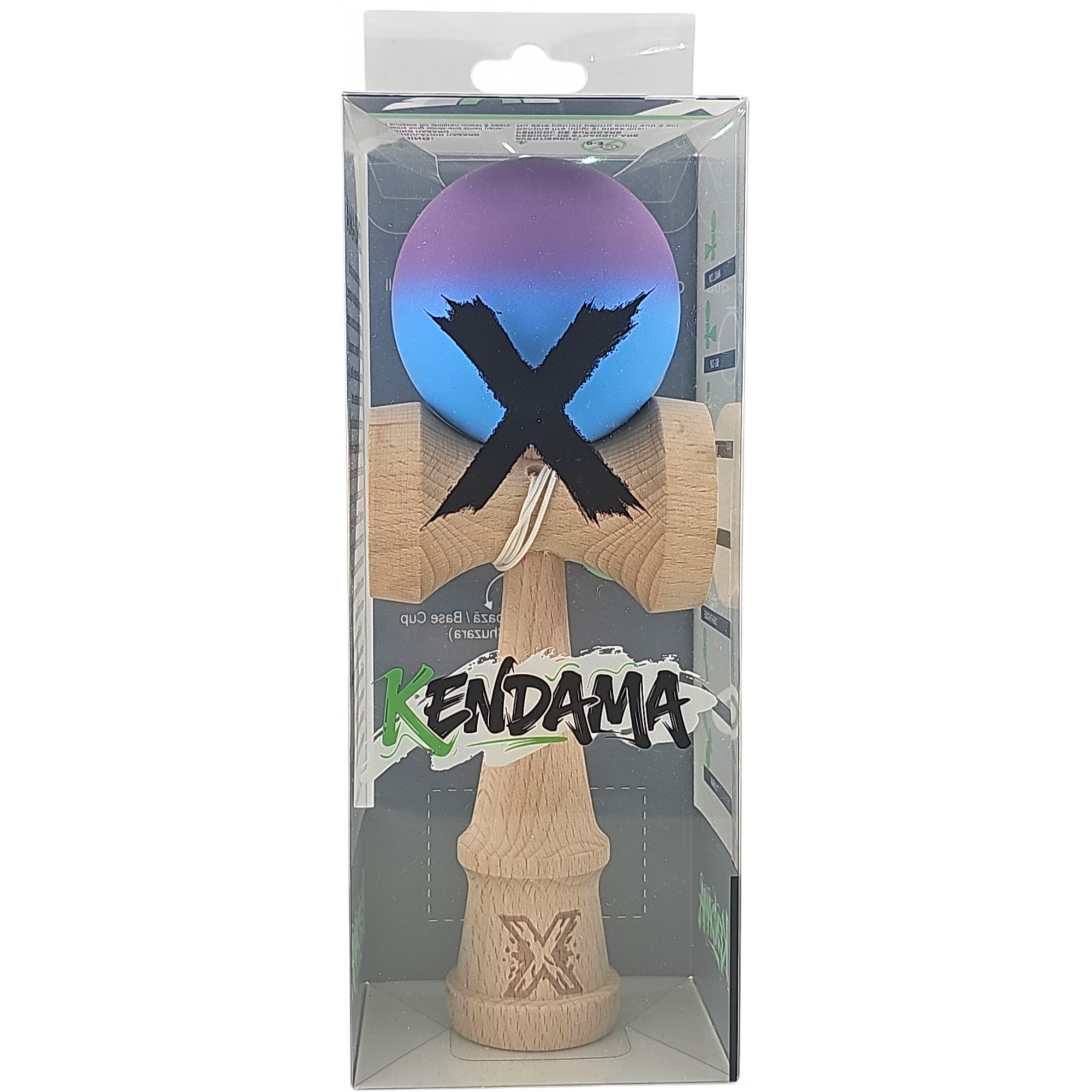 Kendama X Originala, Profesionala, Flippy, din Lemn, Rubber Grip, 18 cm, Gradient Violet/Albastru