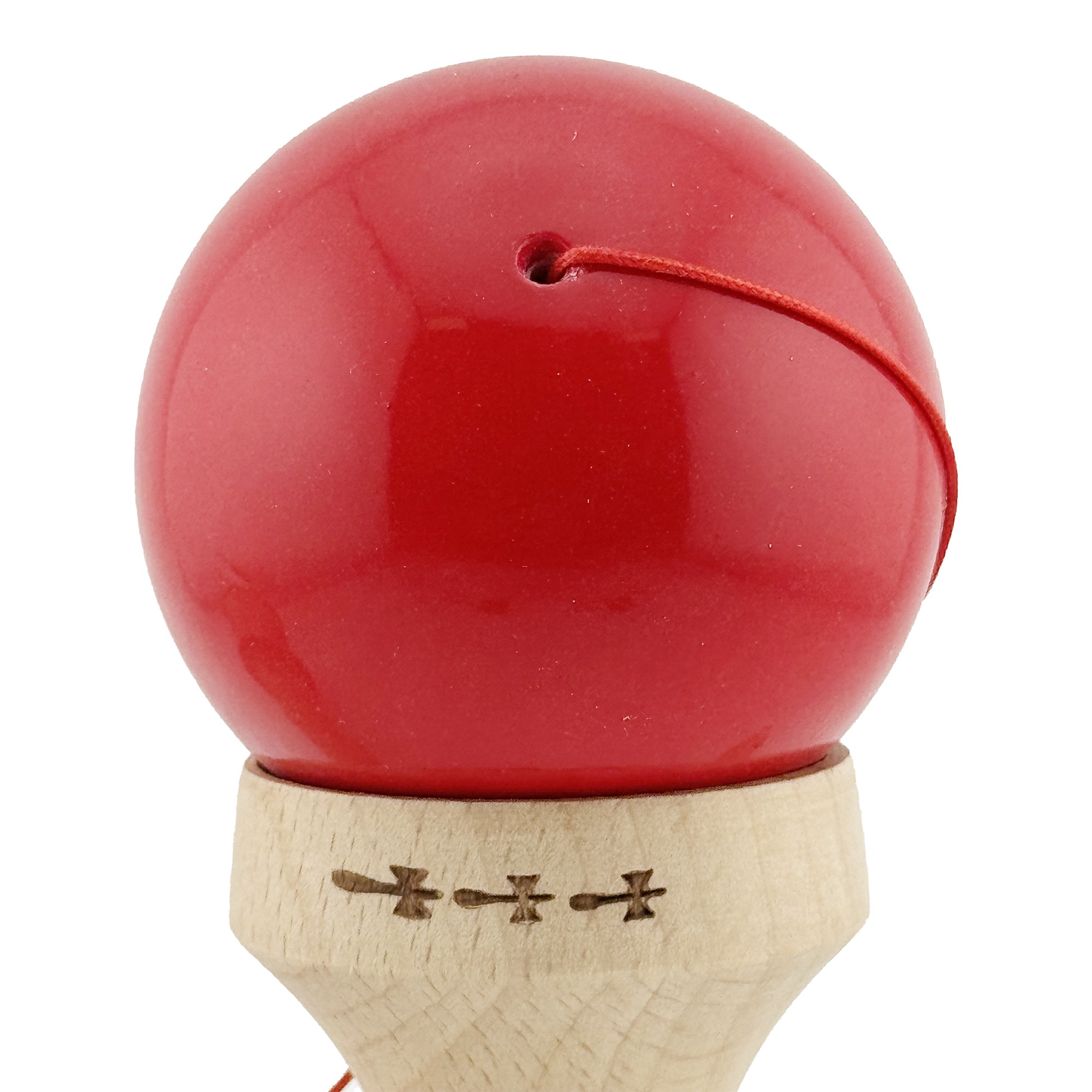 Kendama X Originala, Profesionala, Flippy, Super Sticky cu Cupe Mari KING SIZE V3, Gaura in Baza, Rulment Metalic, din lemn 18 cm, Ata 62/65 cm, Bicolor Rosu/Alb