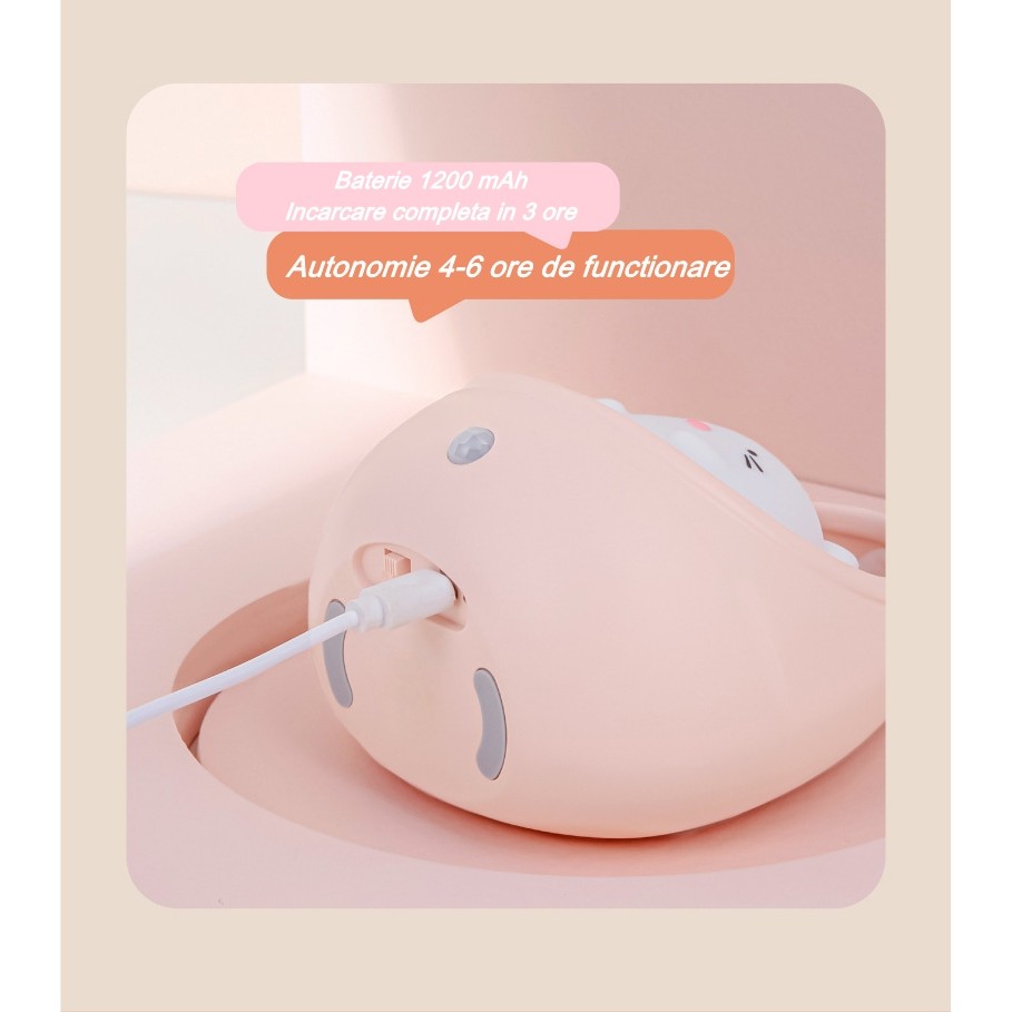 Aceasta lampa de veghe ajuta copilasii sa ramana calmi atunci cand luminile se sting prin casa si e timpul de culcare, de asemenea ii poate proteja de lumina purternica a becului din camera atunci cand doriti sa alaptati sau sa petreceti timp citind o carte sau alte activitati pentru munca. Siliconul lampii este catifelat si sigur pentru copilul Dvs., iar lumina reflectata de lampa este blanda.