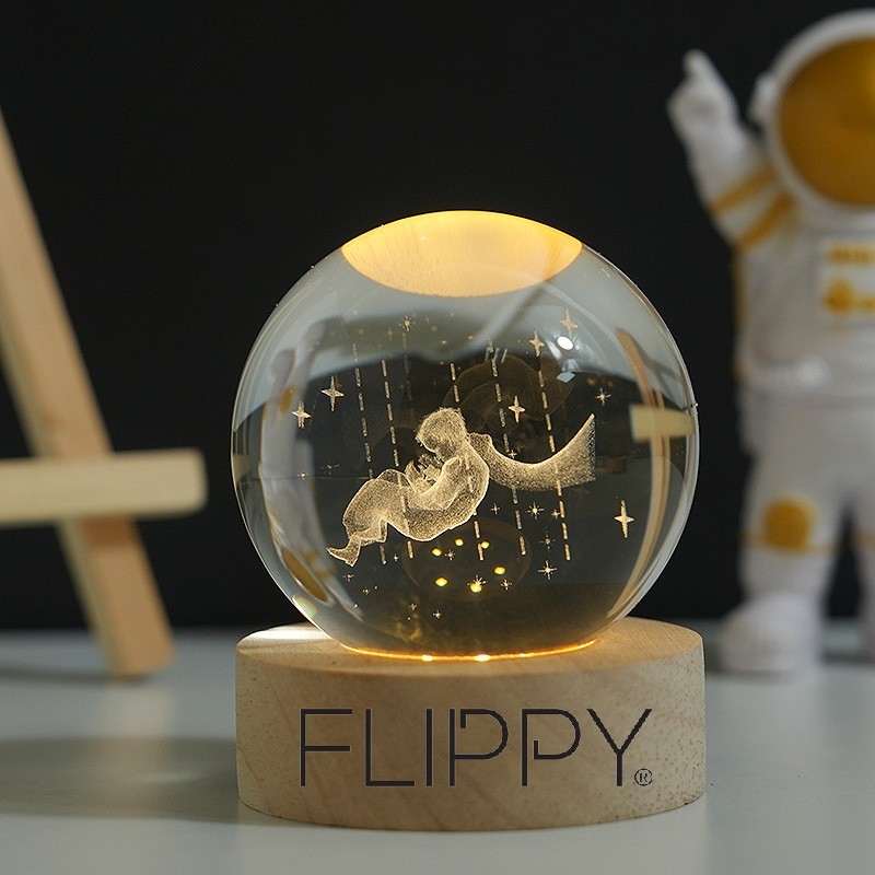 Lumina noastră de noapte este realizată din cristal K9 de înaltă calitate și tehnologie avansată de gravare cu laser 3D pentru a crea o imagine vie și clară. Când rotiți bila de cristal, luminile LED încorporate aruncă un model uimitor și strălucitor pe tavan.