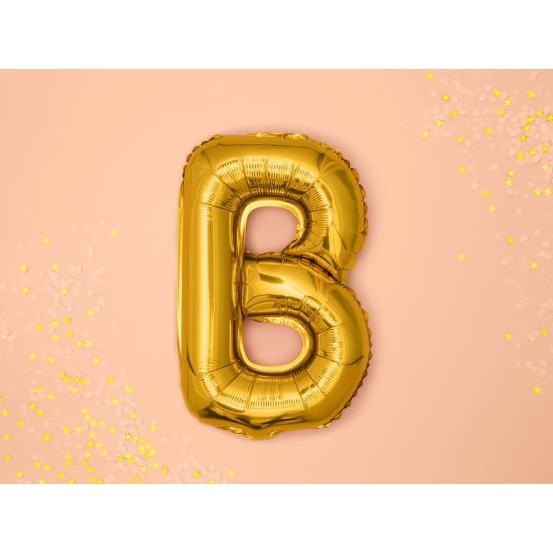 Balon Folie Metalizata Litera B, Flippy, 80 cm, Umflati cu Heliu sau Aer, Ambalaj Individual, Pai inclus, Auriu