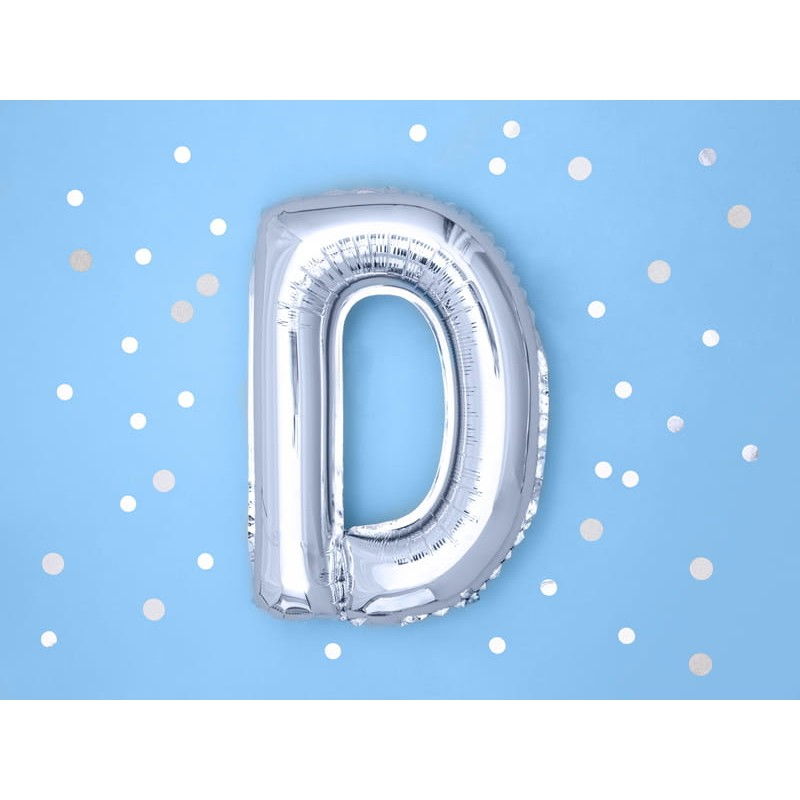Balon Folie Metalizata Litera D, Flippy, 40 cm, Umflati cu Heliu sau Aer, Ambalaj Individual, Pai inclus, Argintiu