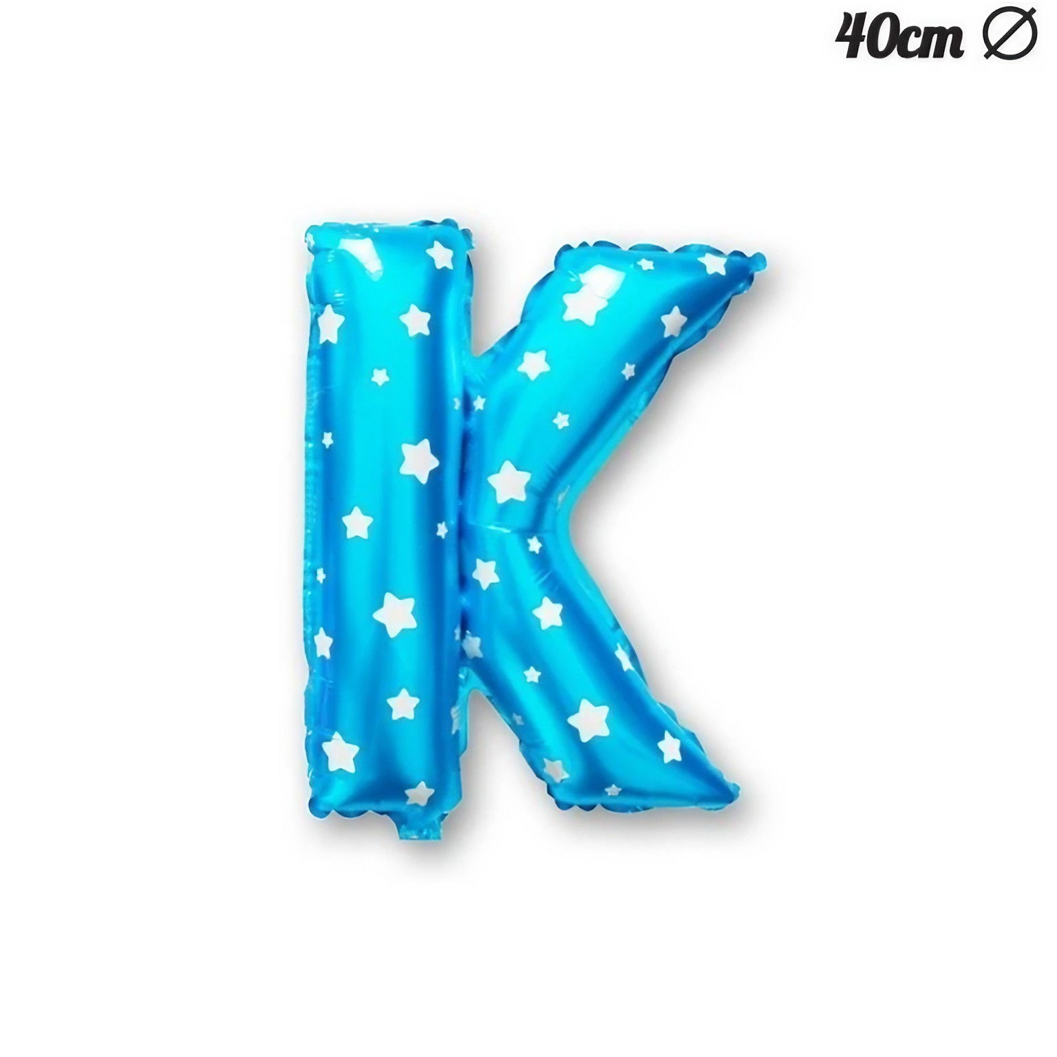 Balon Folie Metalizata Litera K, Flippy, 40 cm, Cu Imprimeu Stelute, Umflati cu Heliu sau Aer, Ambalaj Individual, Pai inclus, Albastru