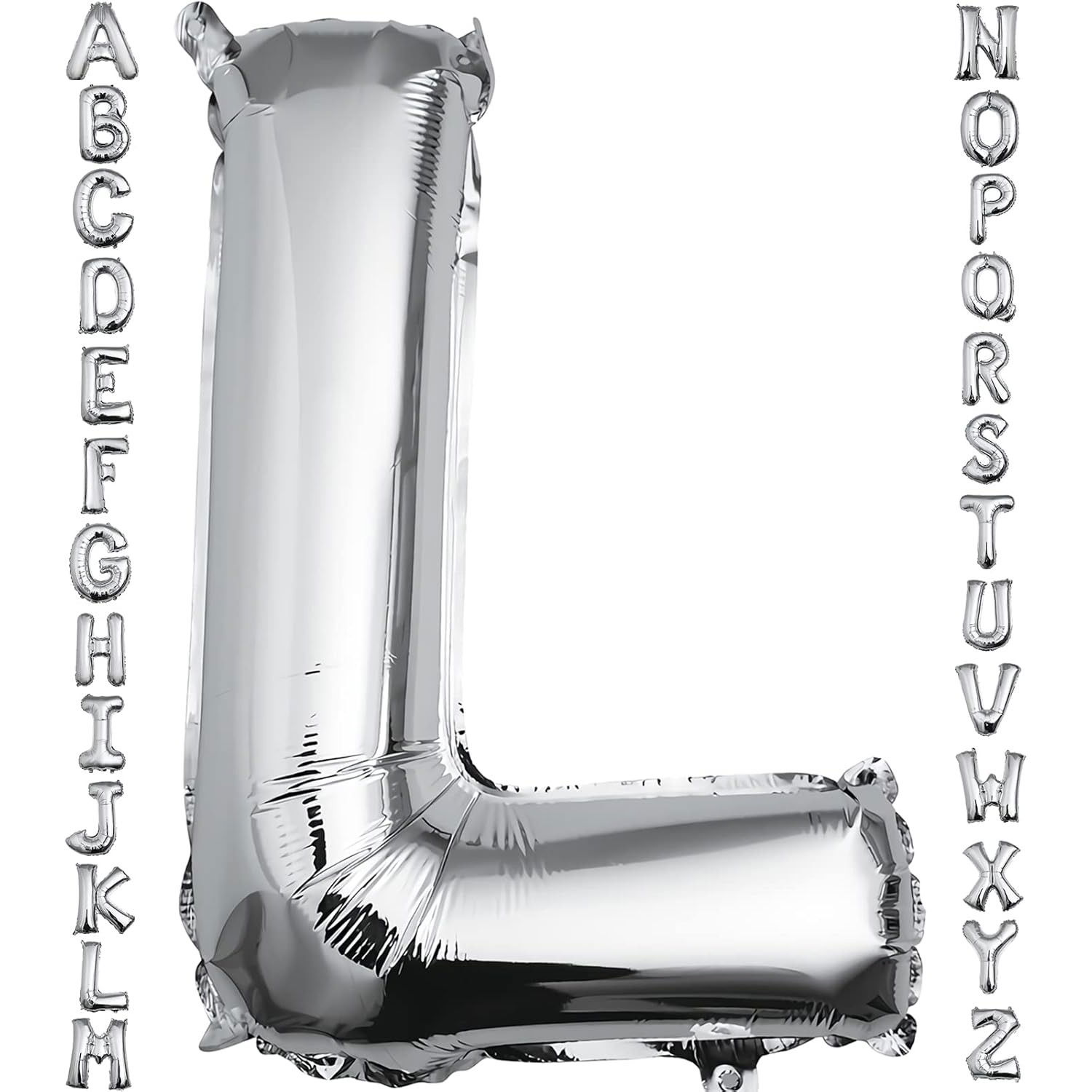 Balon Folie Metalizata Litera L, Flippy, 40 cm, Umflati cu Heliu sau Aer, Ambalaj Individual, Pai inclus, Argintiu