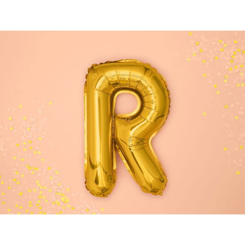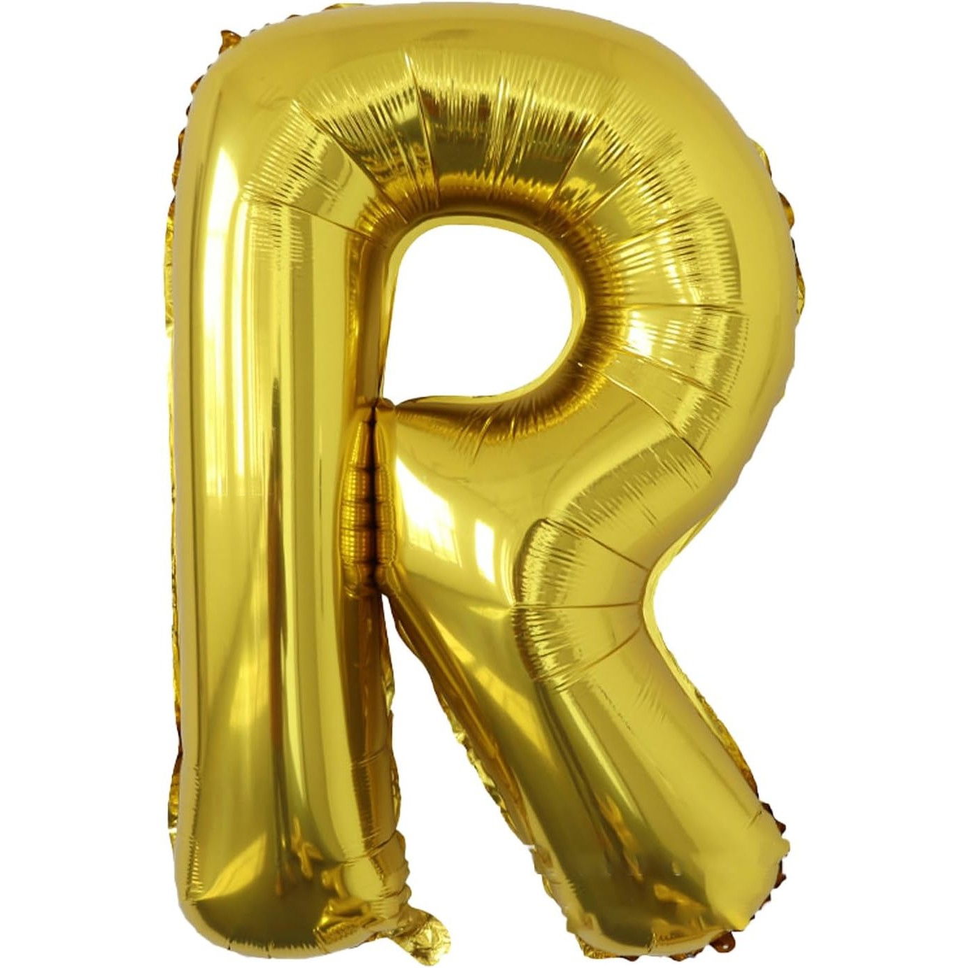 Balon Folie Metalizata Litera R, Flippy, 80 cm, Umflati cu Heliu sau Aer, Ambalaj Individual, Pai inclus, Auriu