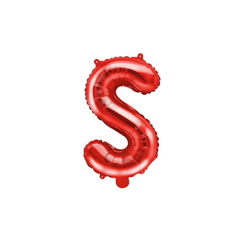 Balon Folie Metalizata Litera S, Flippy, 40 cm, Umflati cu Heliu sau Aer, Ambalaj Individual, Pai inclus, Rosu