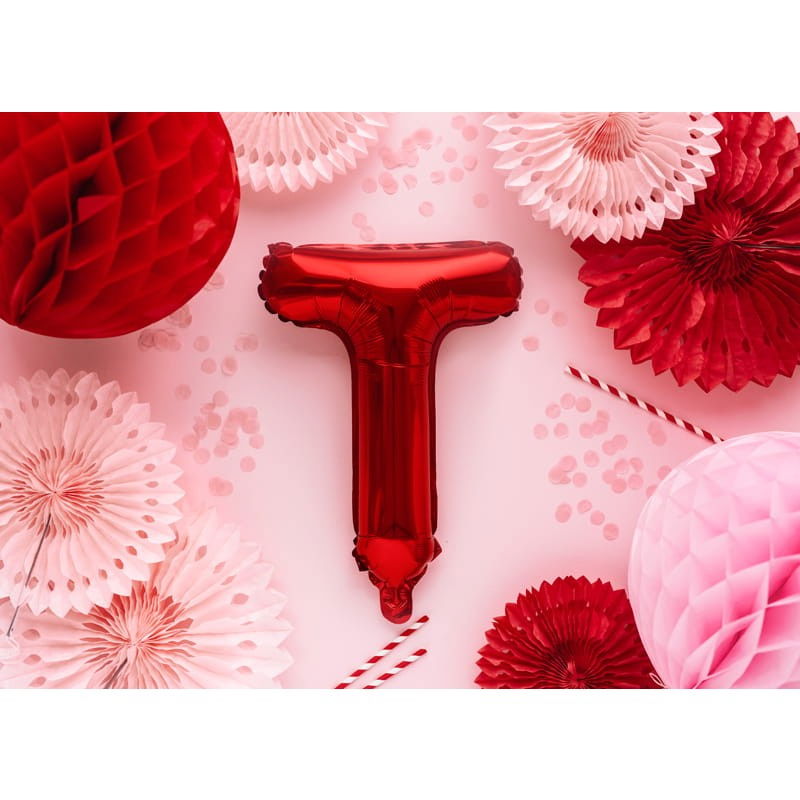Balon Folie Metalizata Litera T, Flippy, 40 cm, Umflati cu Heliu sau Aer, Ambalaj Individual, Pai inclus, Rosu