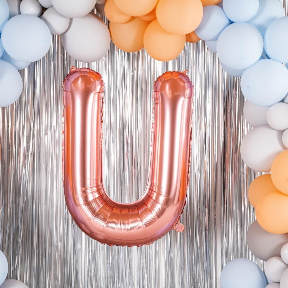 Balon Folie Metalizata Litera U, Flippy, 100 cm, Umflati cu Heliu sau Aer, Ambalaj Individual, Pai inclus, Rose Gold