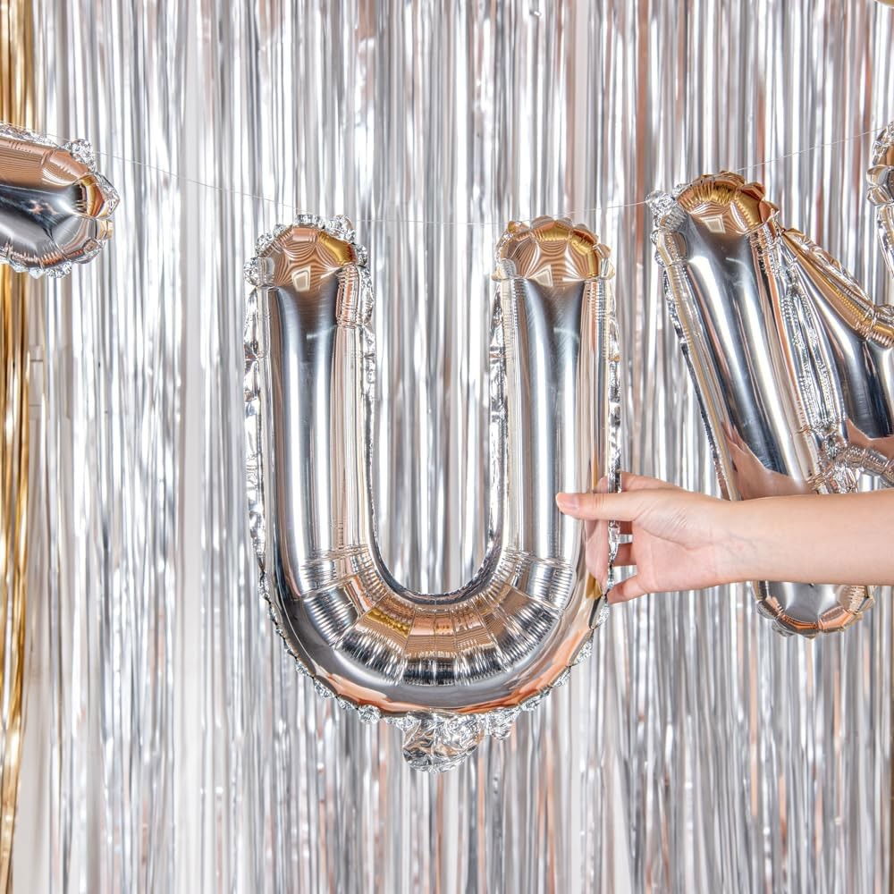 Balon Folie Metalizata Litera U, Flippy, 40 cm, Umflati cu Heliu sau Aer, Ambalaj Individual, Pai inclus, Argintiu
