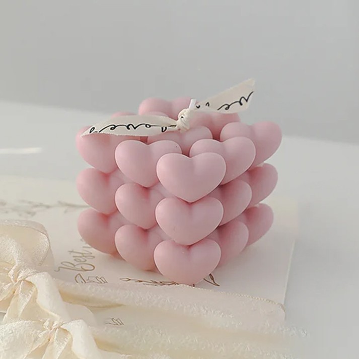 Imbogateste-ti spatiul cu caldura si farmec cu lumanarile parfumate Hearts Rubik's Cube.