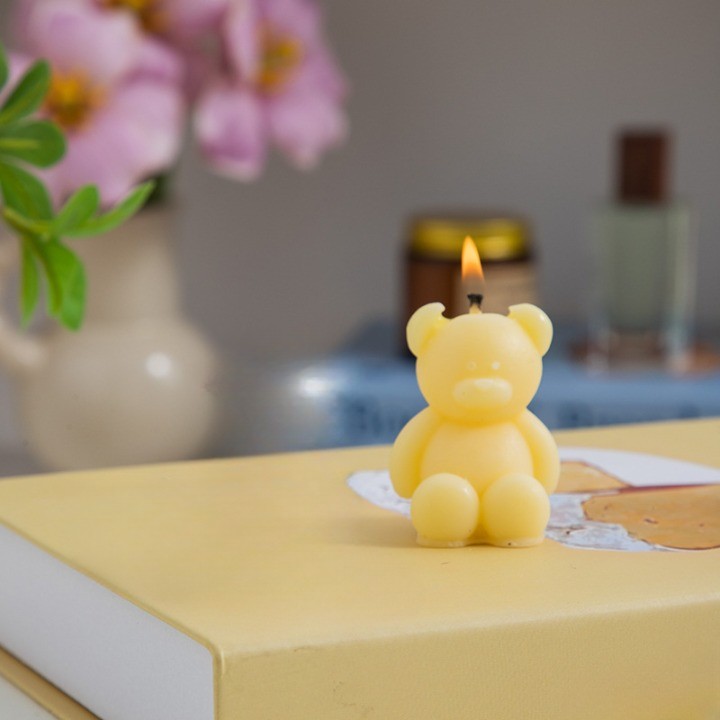 Culoarea galbena a lumanarii aduce o nuanta de lumina stralucitoare, asociata cu optimism, bucurie si vitalitate, fiind perfecta pentru a completa orice decor, fie ca este vorba de o camera de zi, un birou sau un spatiu de relaxare. Designul cu model ursulet adauga un aer jucaus si adorabil, ce va capta atentia si va adauga un detaliu fermecator in orice incapere.