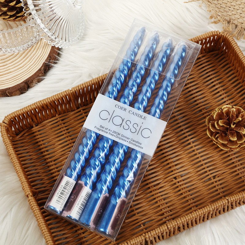 Set 4 Lumanari pentru Masa, Cina, Decor, Flippy, Model Rasucit, Lungime 25 cm, Albastru