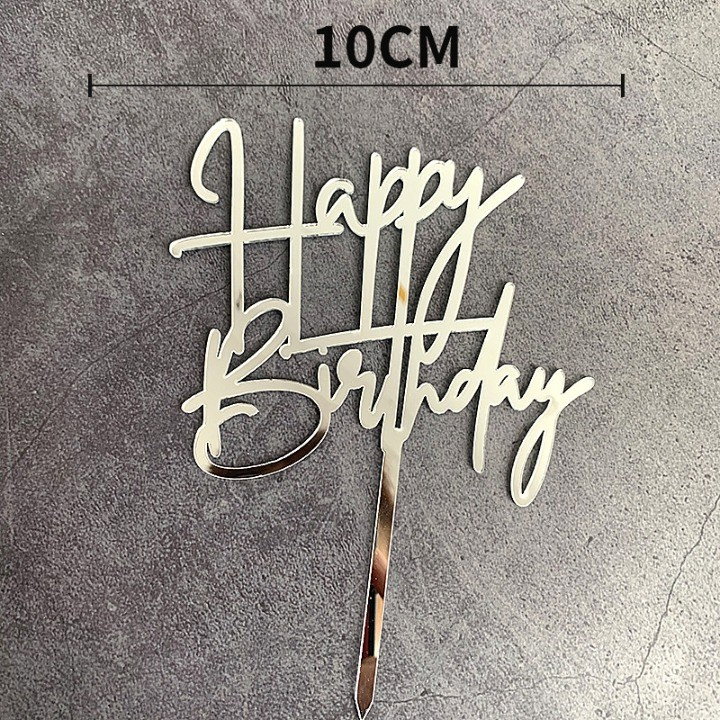 Împodobește tortul tău de ziua de naștere cu un strop de eleganță și bucurie! Topperul din imagine, cu mesajul "Happy Birthday" realizat dintr-un material de calitate superioară, este accesoriul perfect pentru a adăuga o notă festivă oricărei prăjituri.