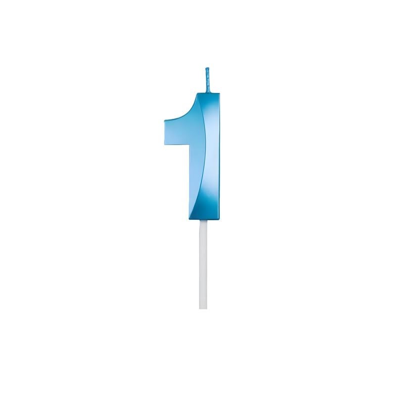 Lumânare Cifră 1, Flippy®, Model Diamond, 5 x 3.4 cm, Albastru