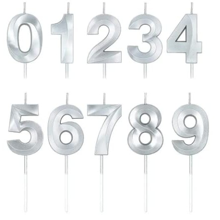 Lumânare Cifră 2, Flippy®, Model Diamond, 5 x 3.4 cm, Argintiu