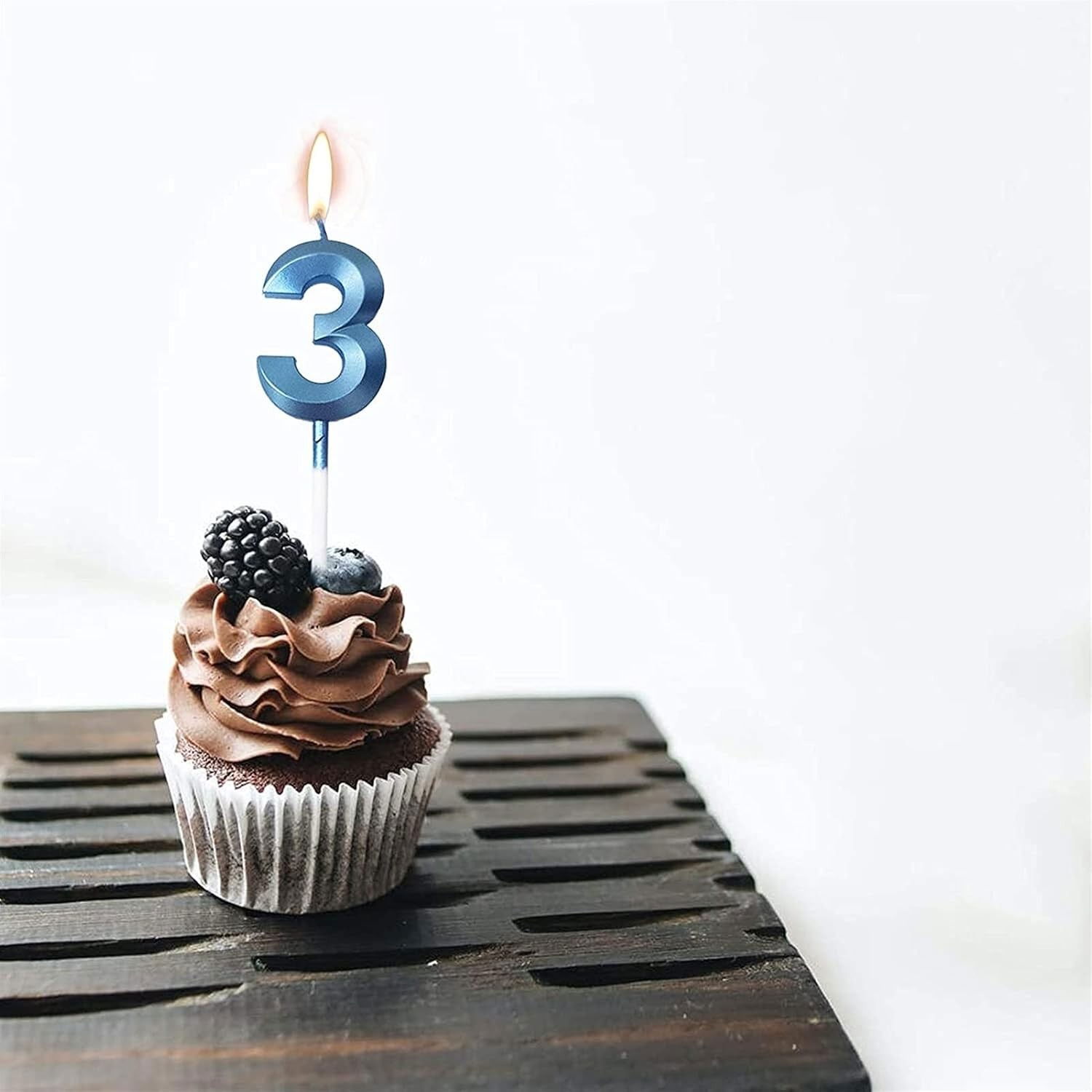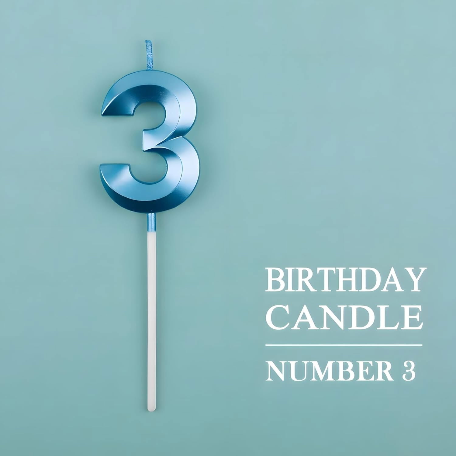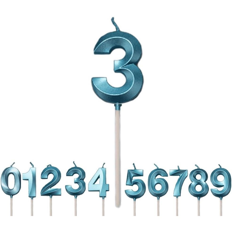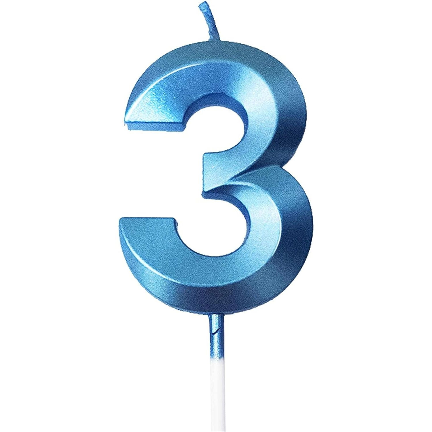 Lumânare Cifră 3, Flippy®, Model Diamond, 5 x 3.4 cm, Albastru