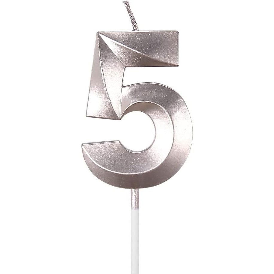 Lumânare Cifră 5, Flippy®, Model Diamond, 5 x 3.4 cm, Argintiu