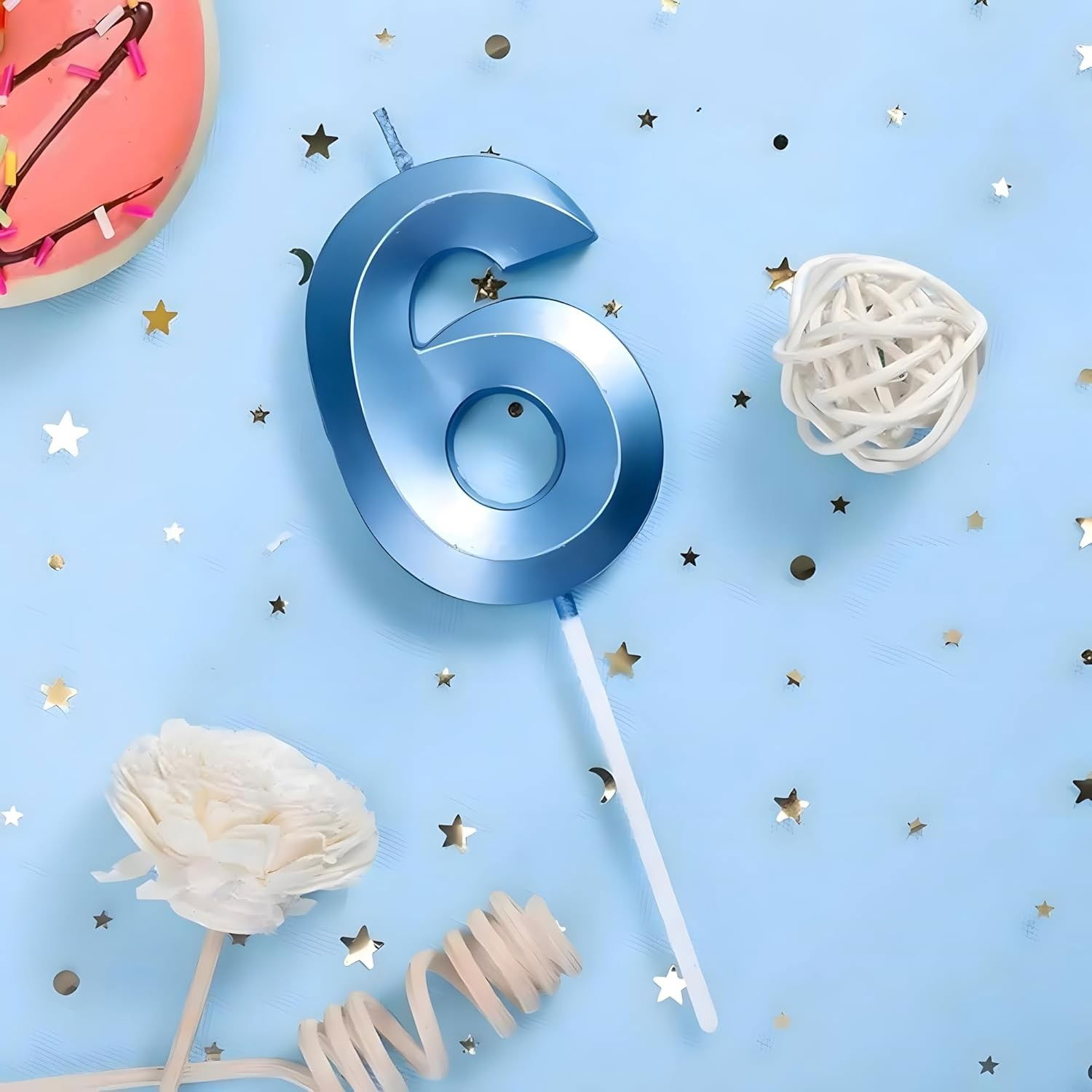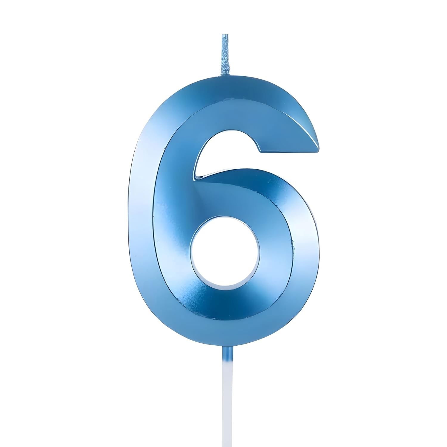 Lumânare Cifră 6, Flippy®, Model Diamond, 5 x 3.4 cm, Albastru