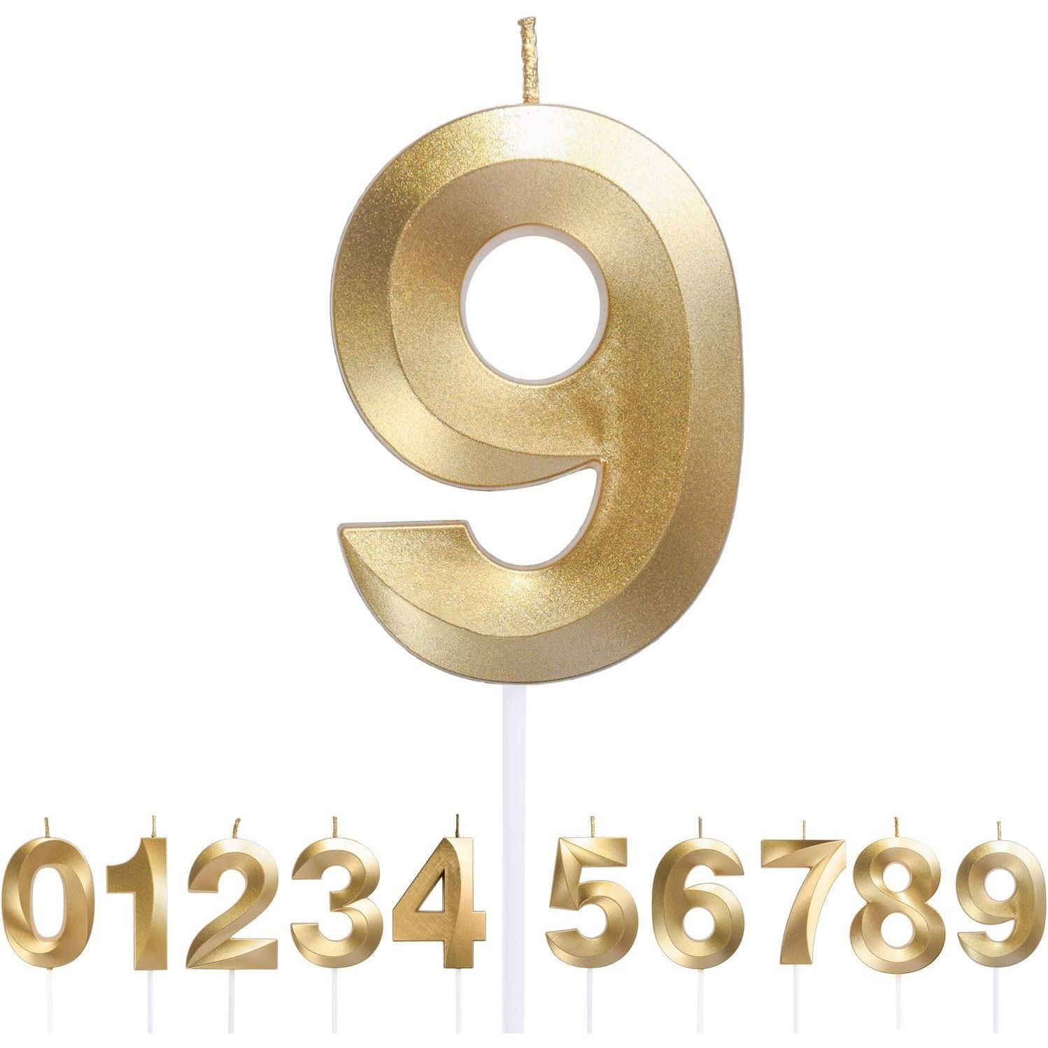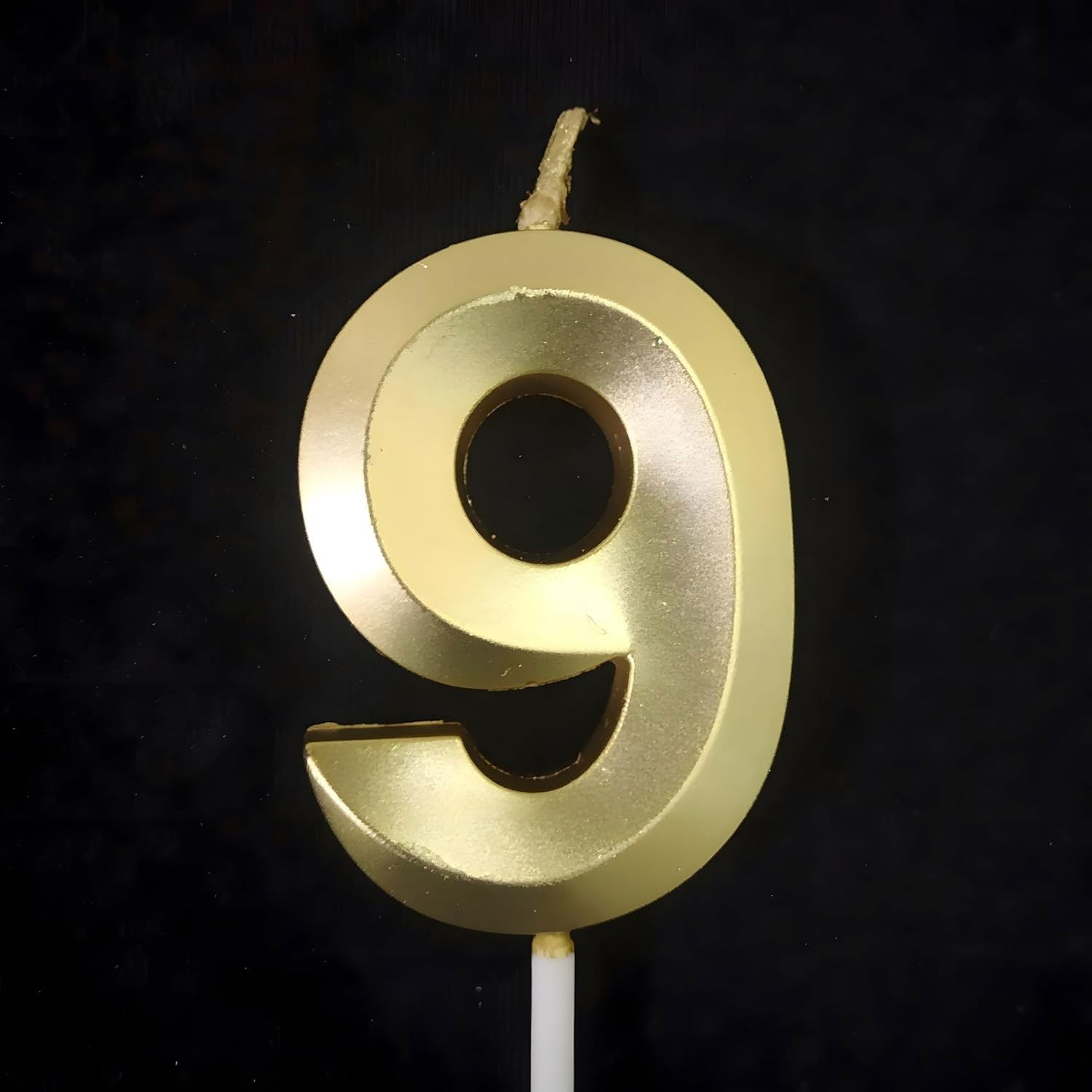 Lumânare Cifră 9, Flippy®, Model Diamond, 5 x 3.4 cm, Auriu