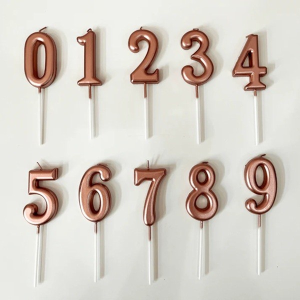 • Design elegant: Model cifră, cu finisaj rose gold lucios, ideal pentru decorarea torturilor festive.