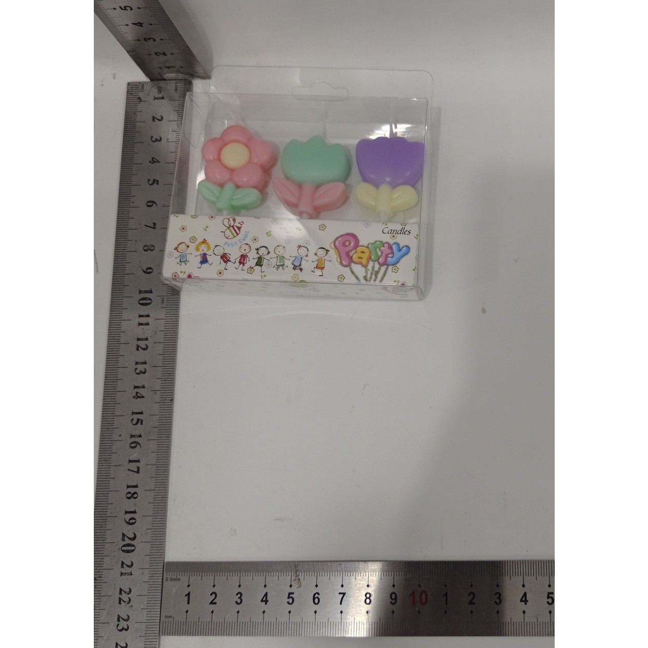 Set 3 Lumânări, Flippy, Temă Flori, Model 1, din Parafină, Multicolor