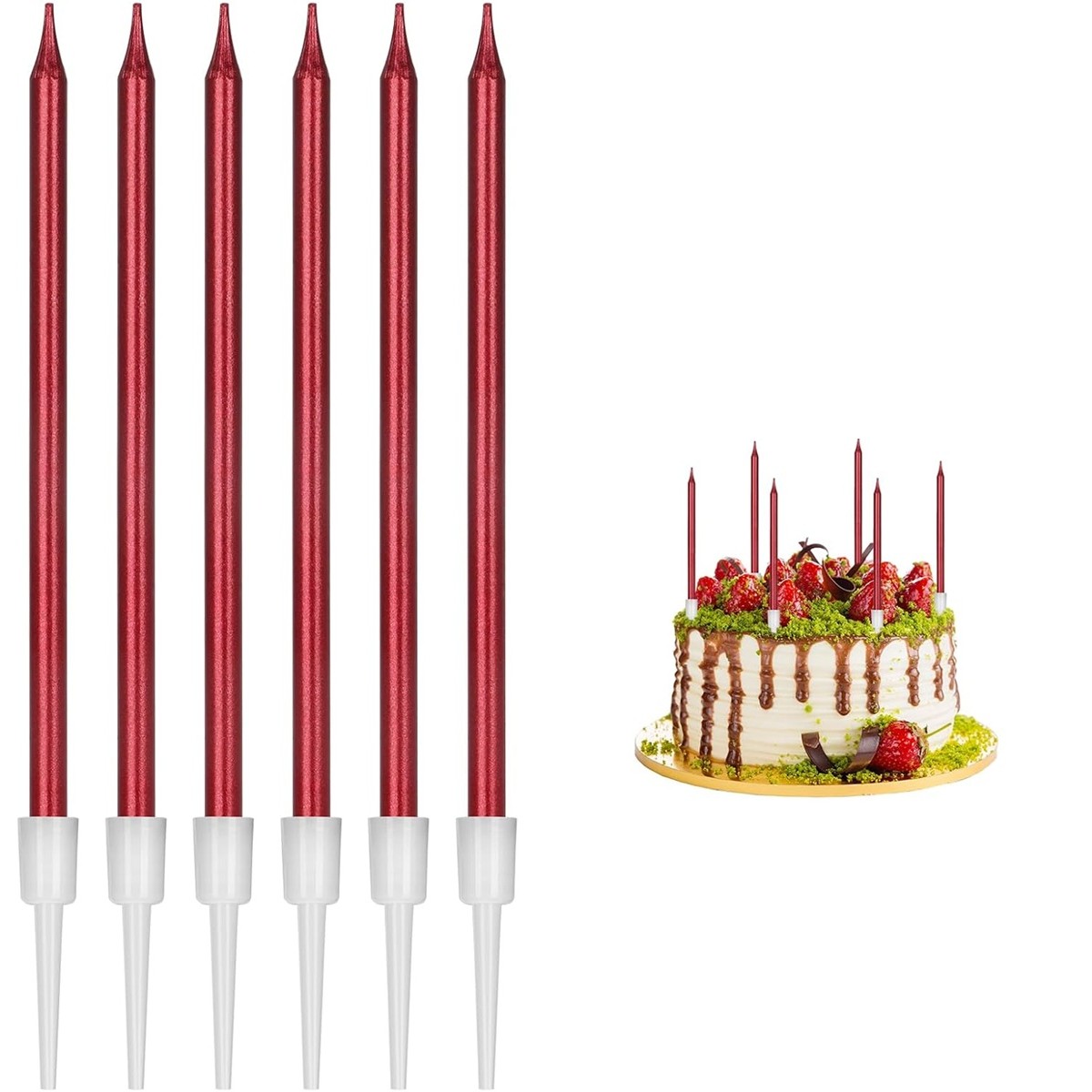 Setul de 6 lumânări tip creion pentru tort este alegerea ideală pentru a adăuga un efect lucios și elegant oricărei aniversări.
